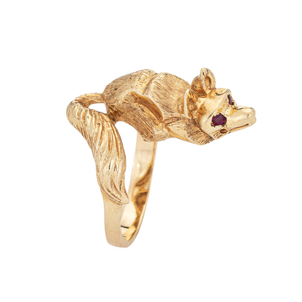 Vintage Fox Ring 14k Yellow Gold Ruby Eyes Estate Fine Animal Jewelry Sz 9