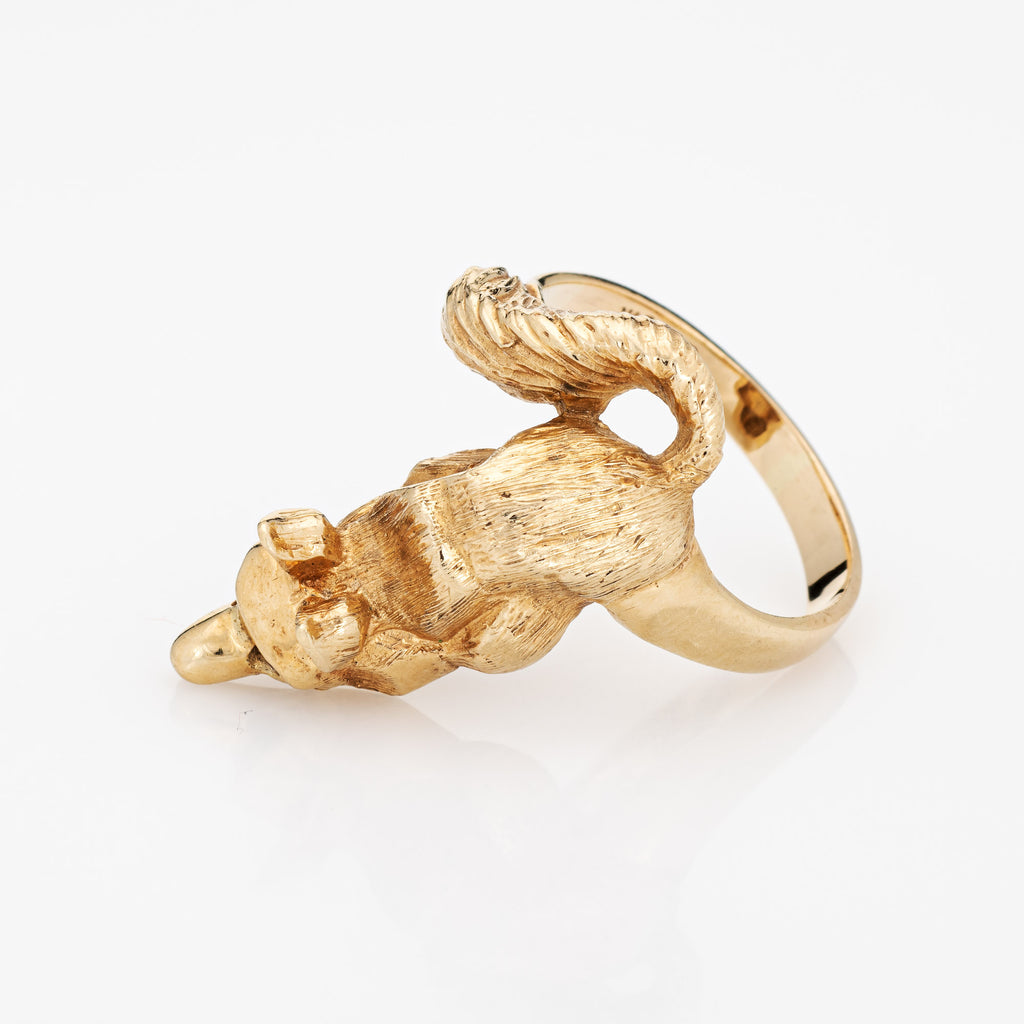 Stylish vintage fox ring (circa 1960s to 1970s) crafted in 14 karat yellow gold.