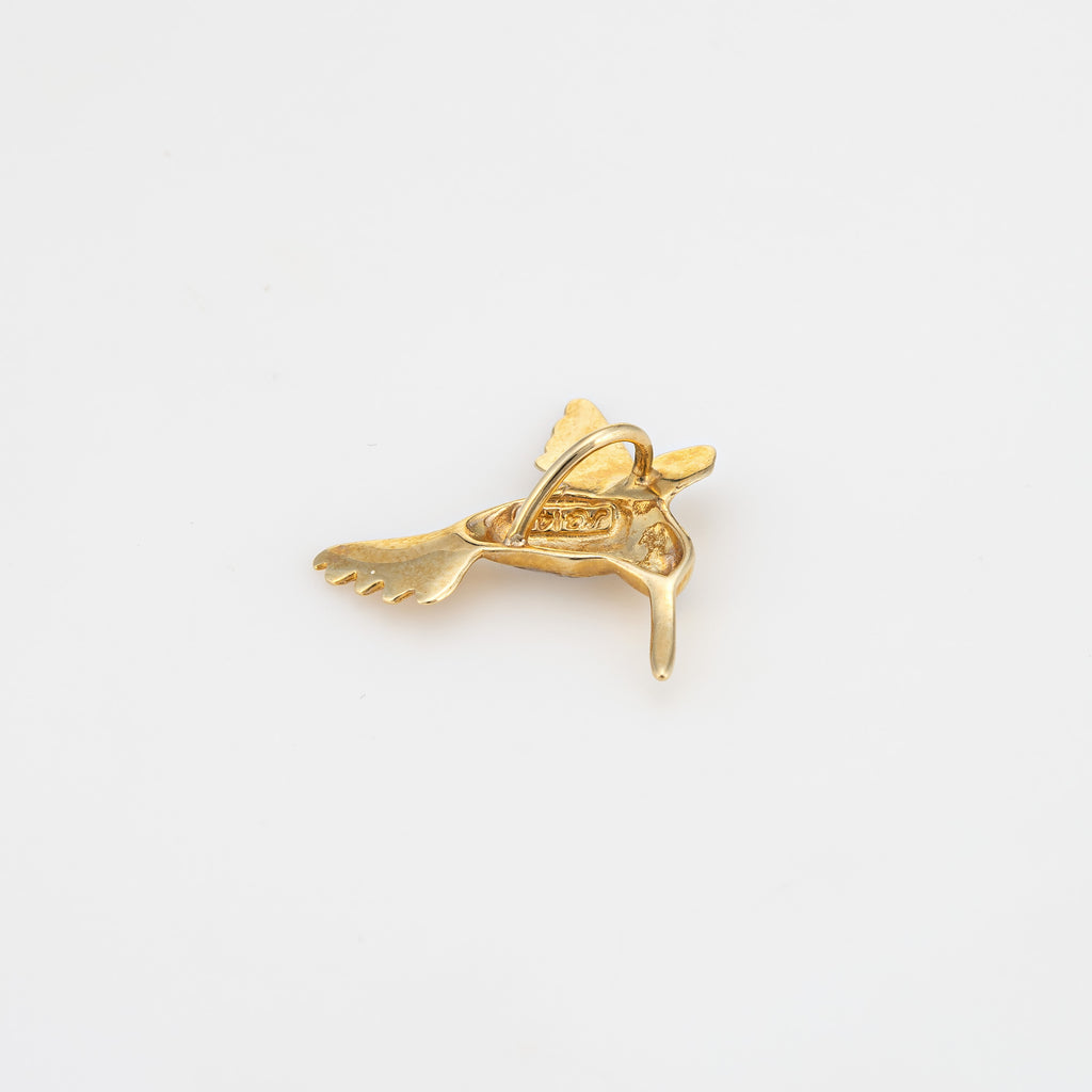 Finely detailed vintage Hummingbird pendant crafted in 14k yellow gold.