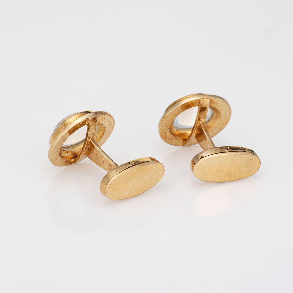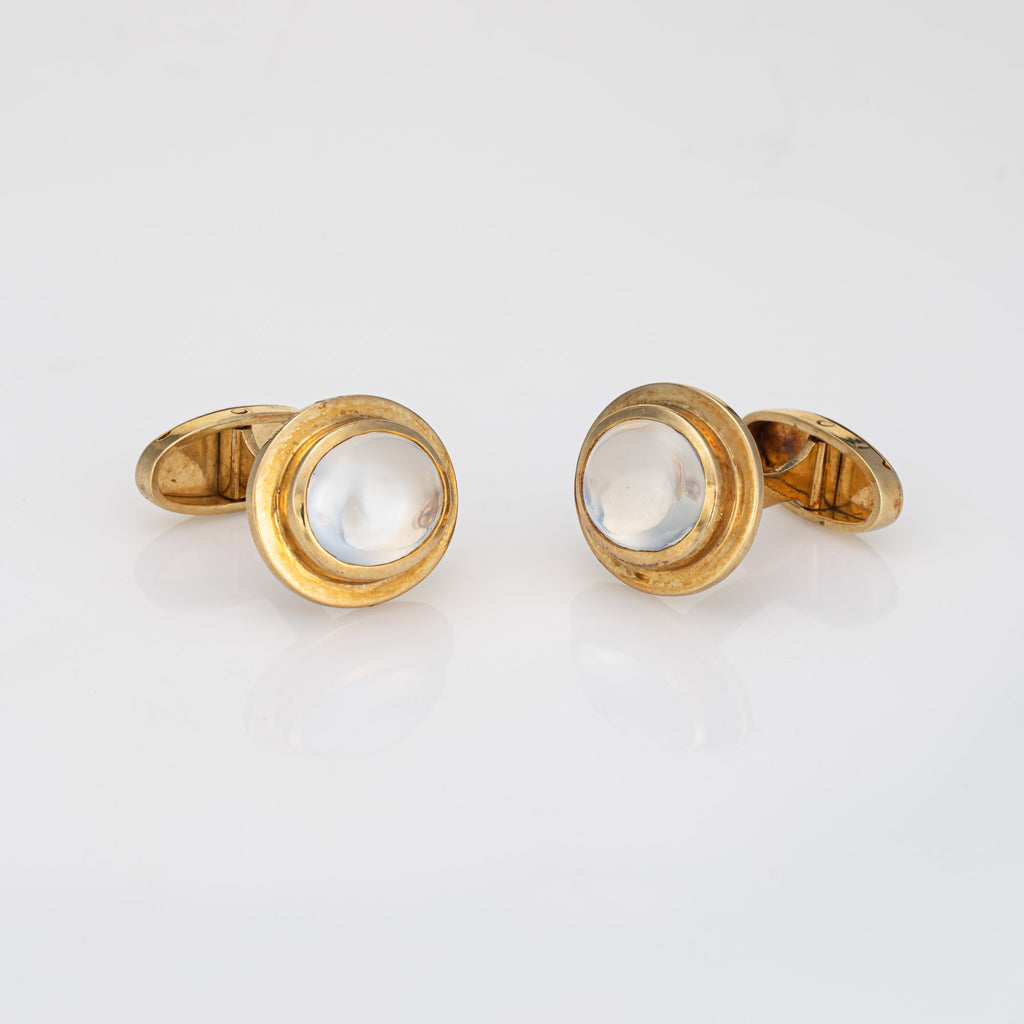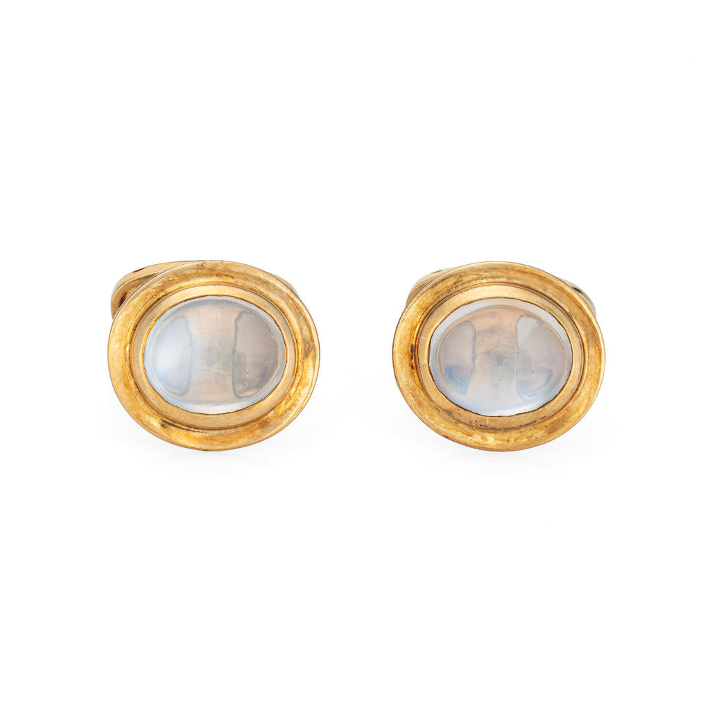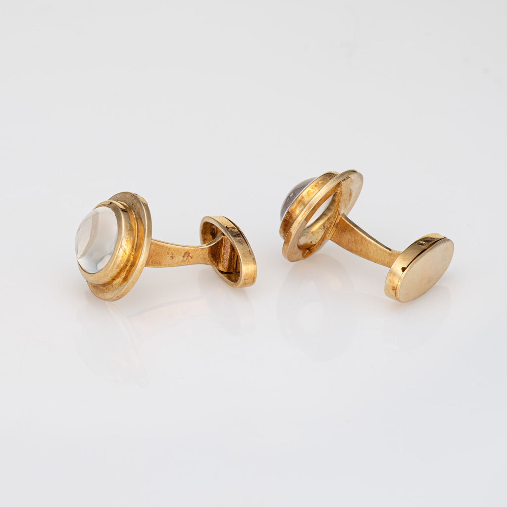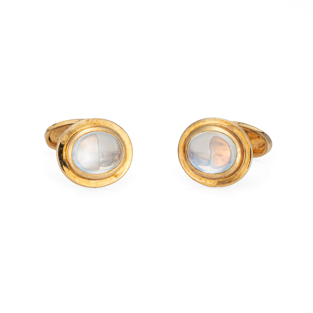 Vintage Rainbow Moonstone Cufflinks 18k Yellow Gold Men's Fine Jewelry