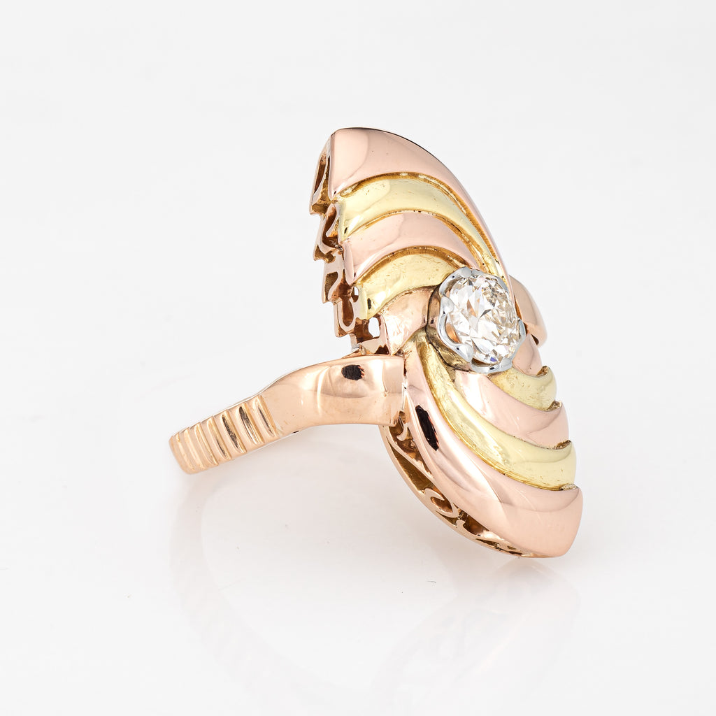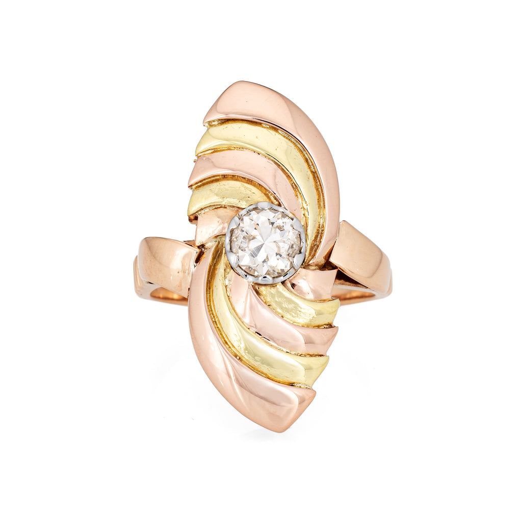 Stylish vintage retro diamond ring (circa 1940s to 1950s) crafted in 18 karat yellow & rose gold.