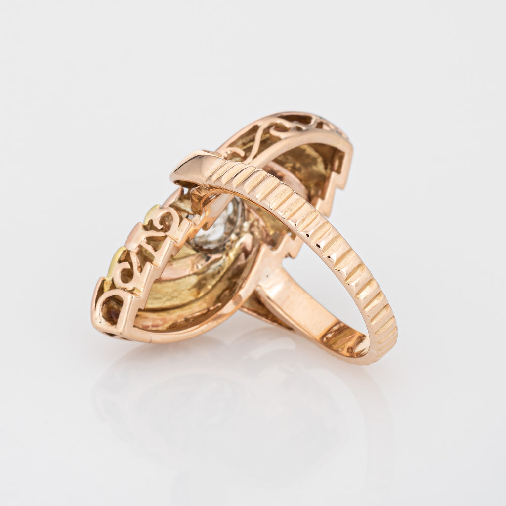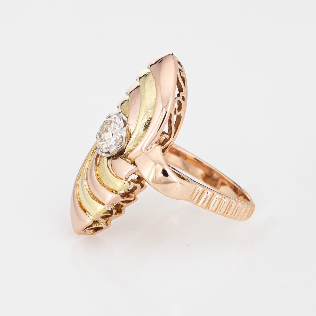 Vintage Retro Diamond Ring Two Tone 18k Rose Yellow Gold Sz 5.5 Navette Cocktail