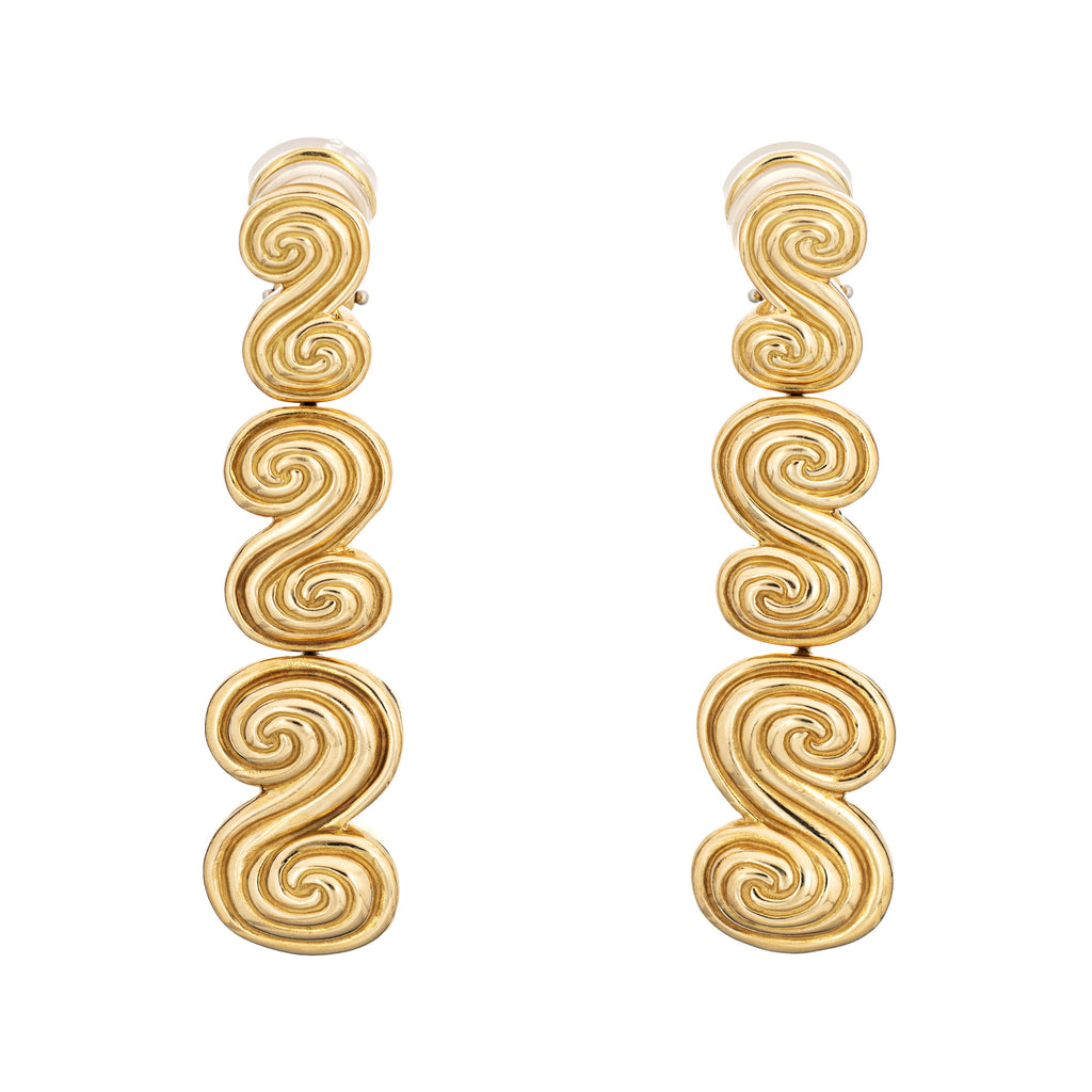 Vintage Tiffany & Co Spiro Earrings c1993 Swirl Long 2" Drops 18k Yellow Gold