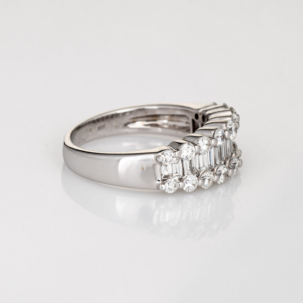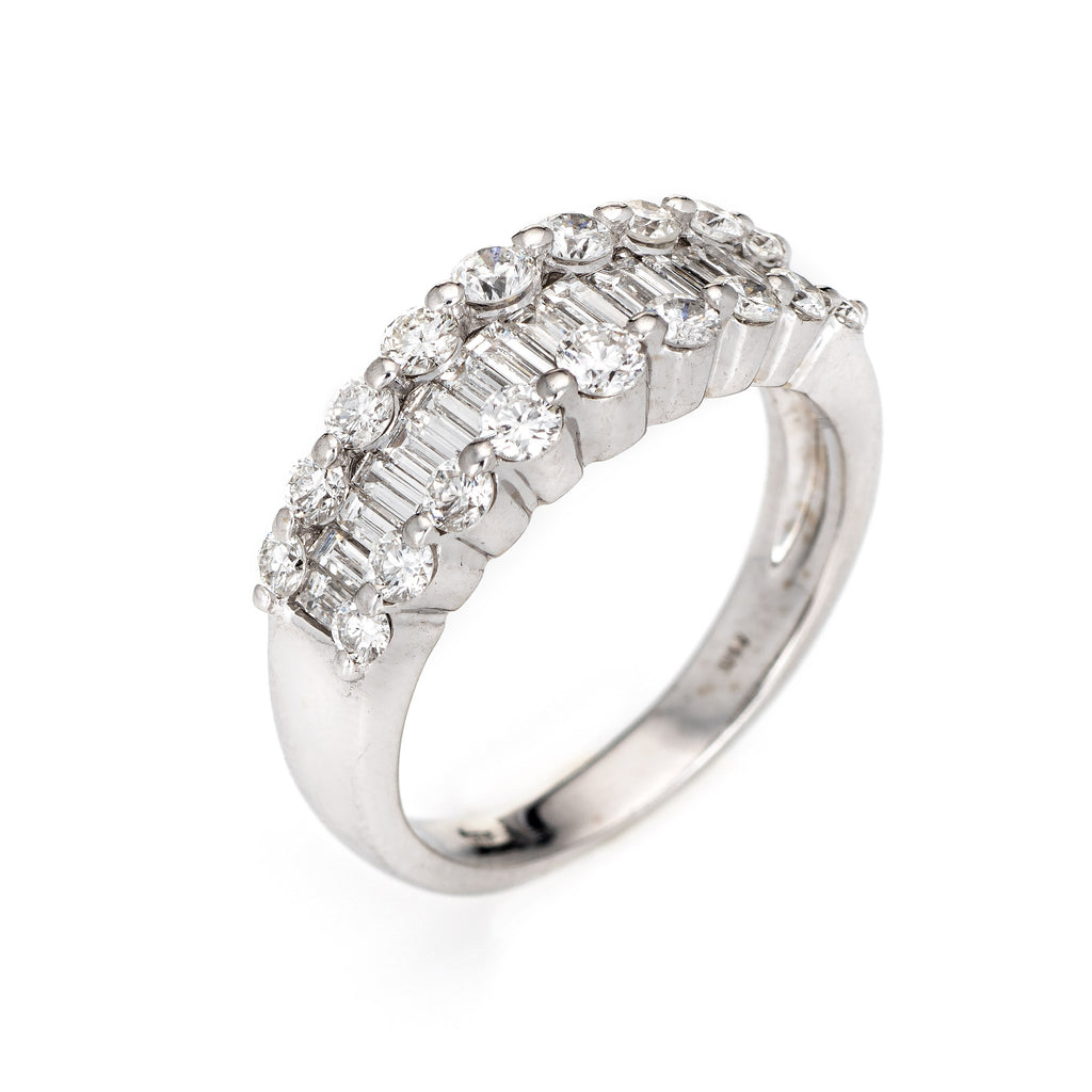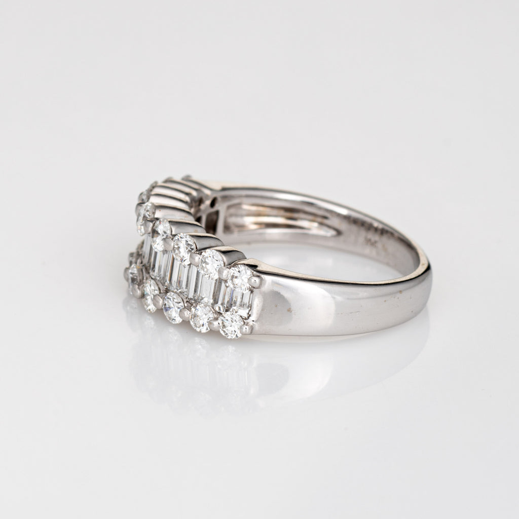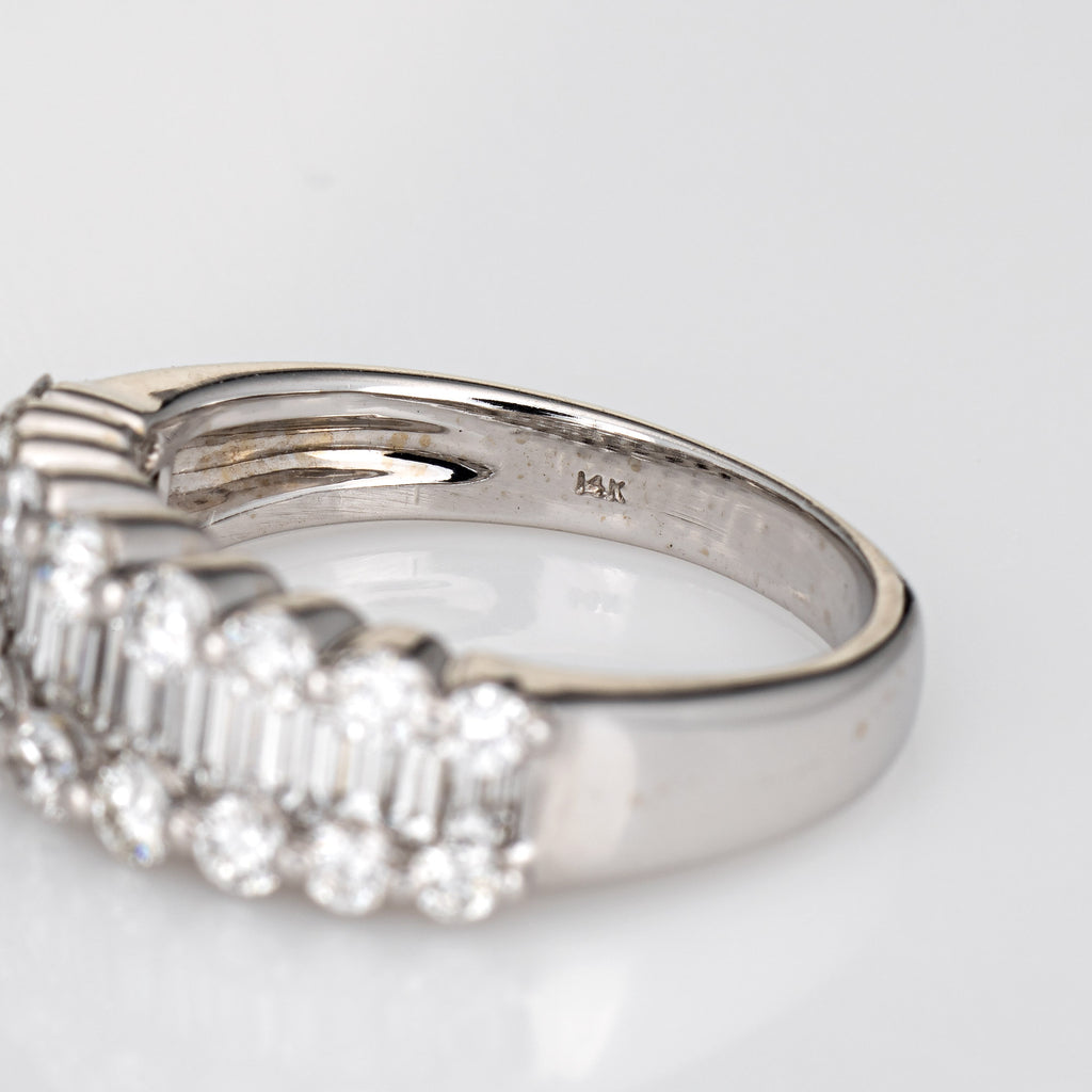 Stylish estimated 1.25 carat mixed cut diamond band crafted in 14k white gold.