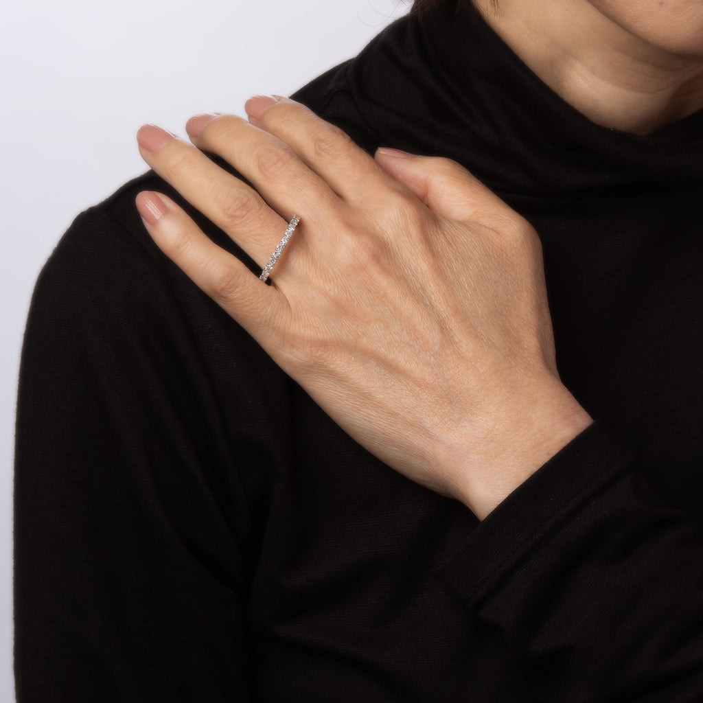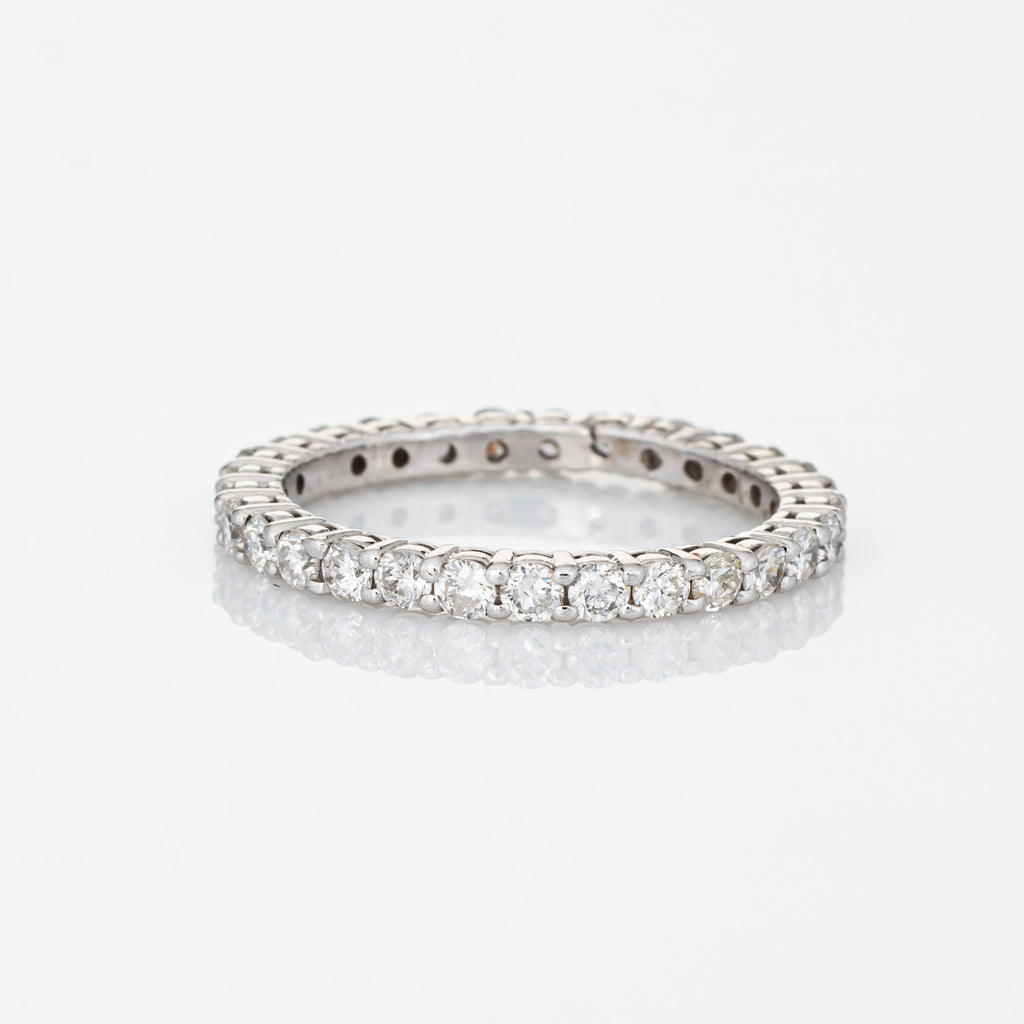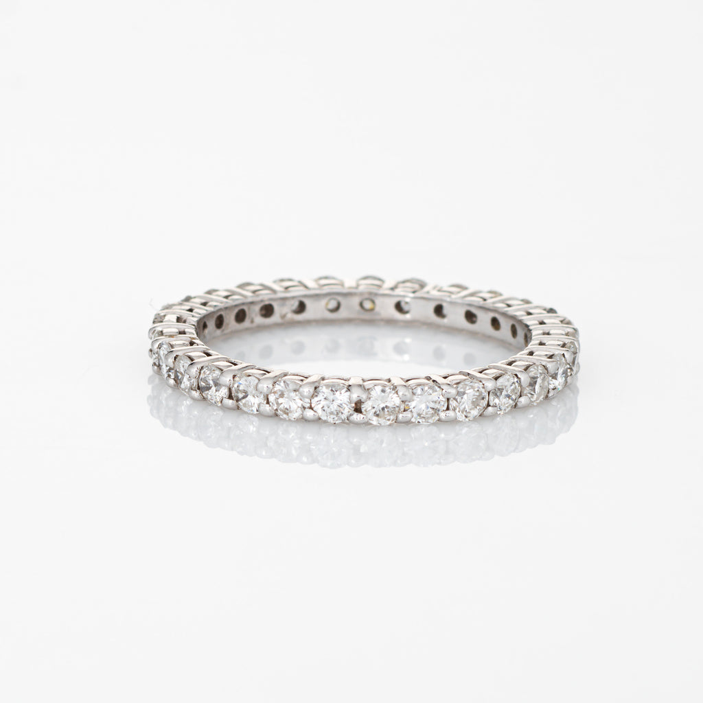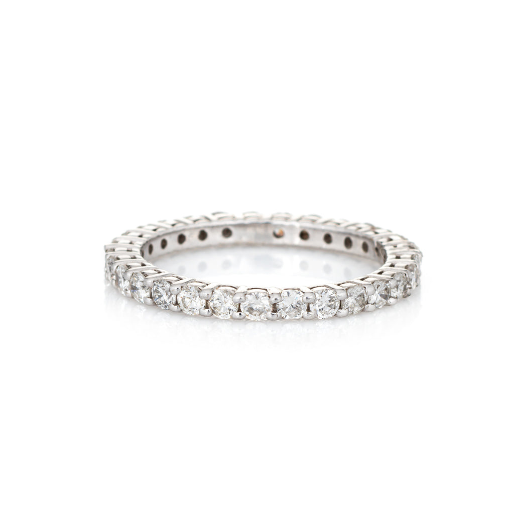 Stylish vintage diamond eternity ring crafted in 14 karat white gold.