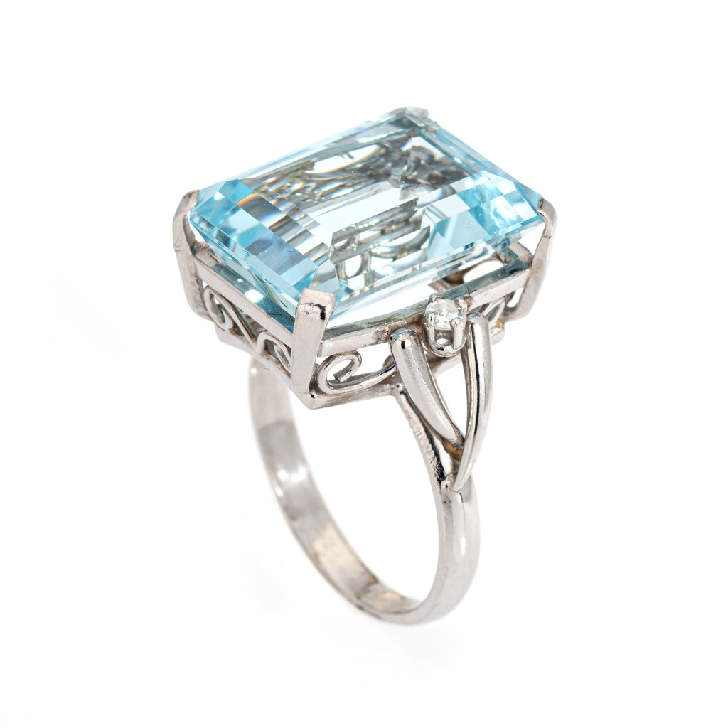 Stylish vintage aquamarine & diamond cocktail ring (circa 1960s to 1970s) crafted in 900 platinum.