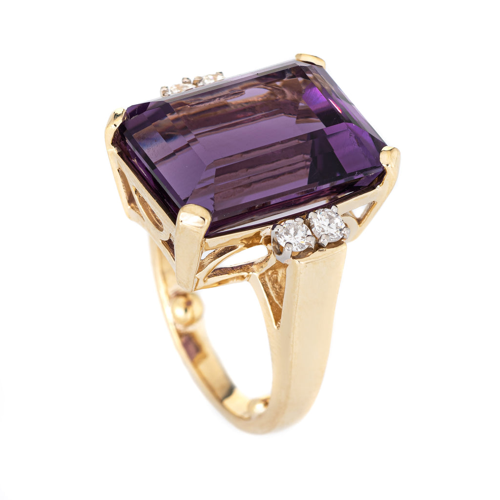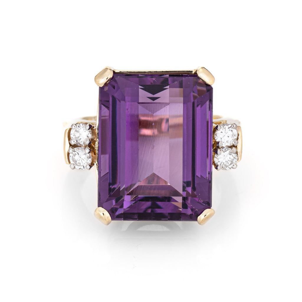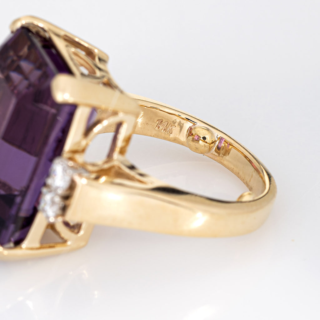 14.50ct Amethyst Diamond Ring Vintage 14k Yellow Gold Emerald Cut Fine Jewelry