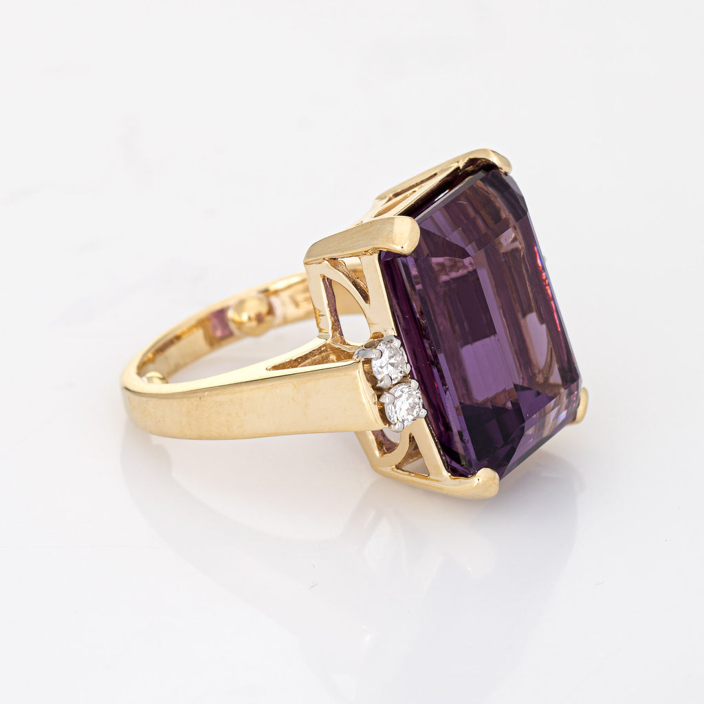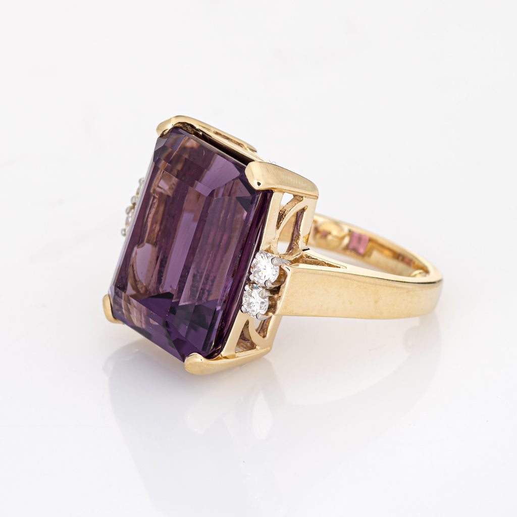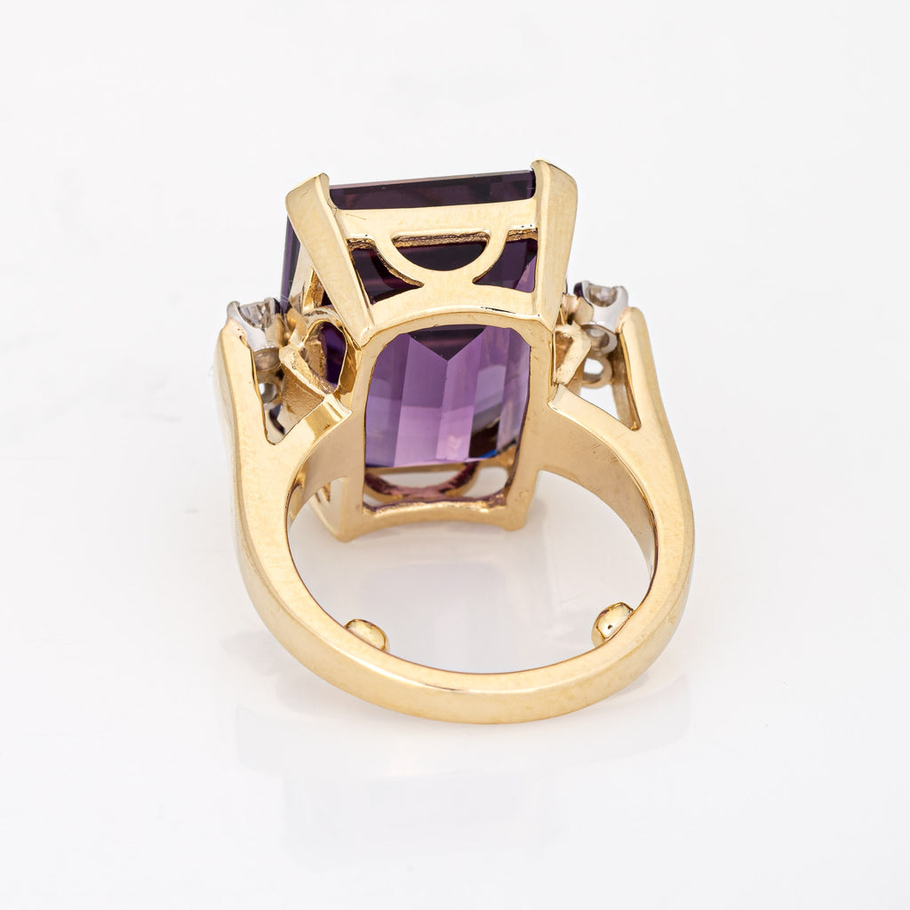 14.50ct Amethyst Diamond Ring Vintage 14k Yellow Gold Emerald Cut Fine Jewelry