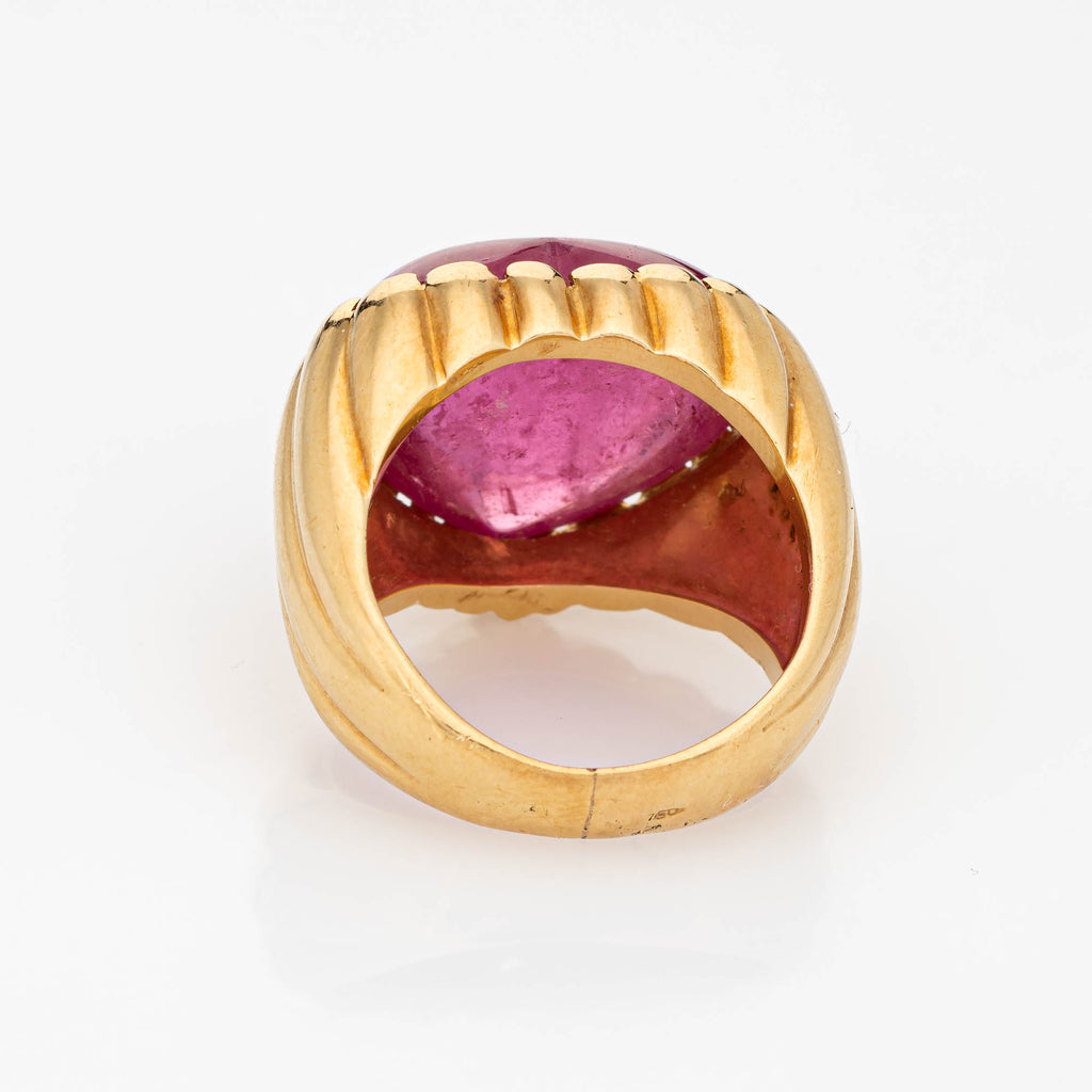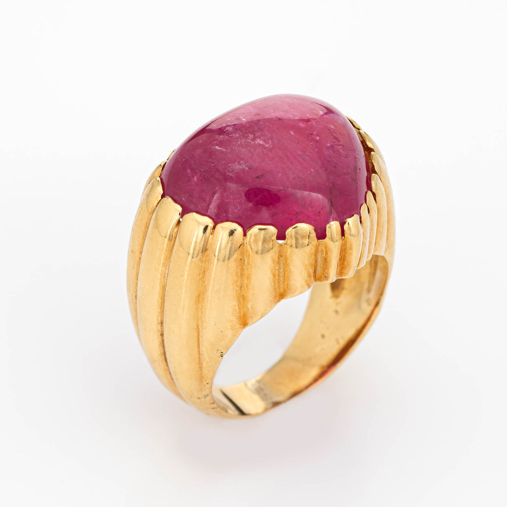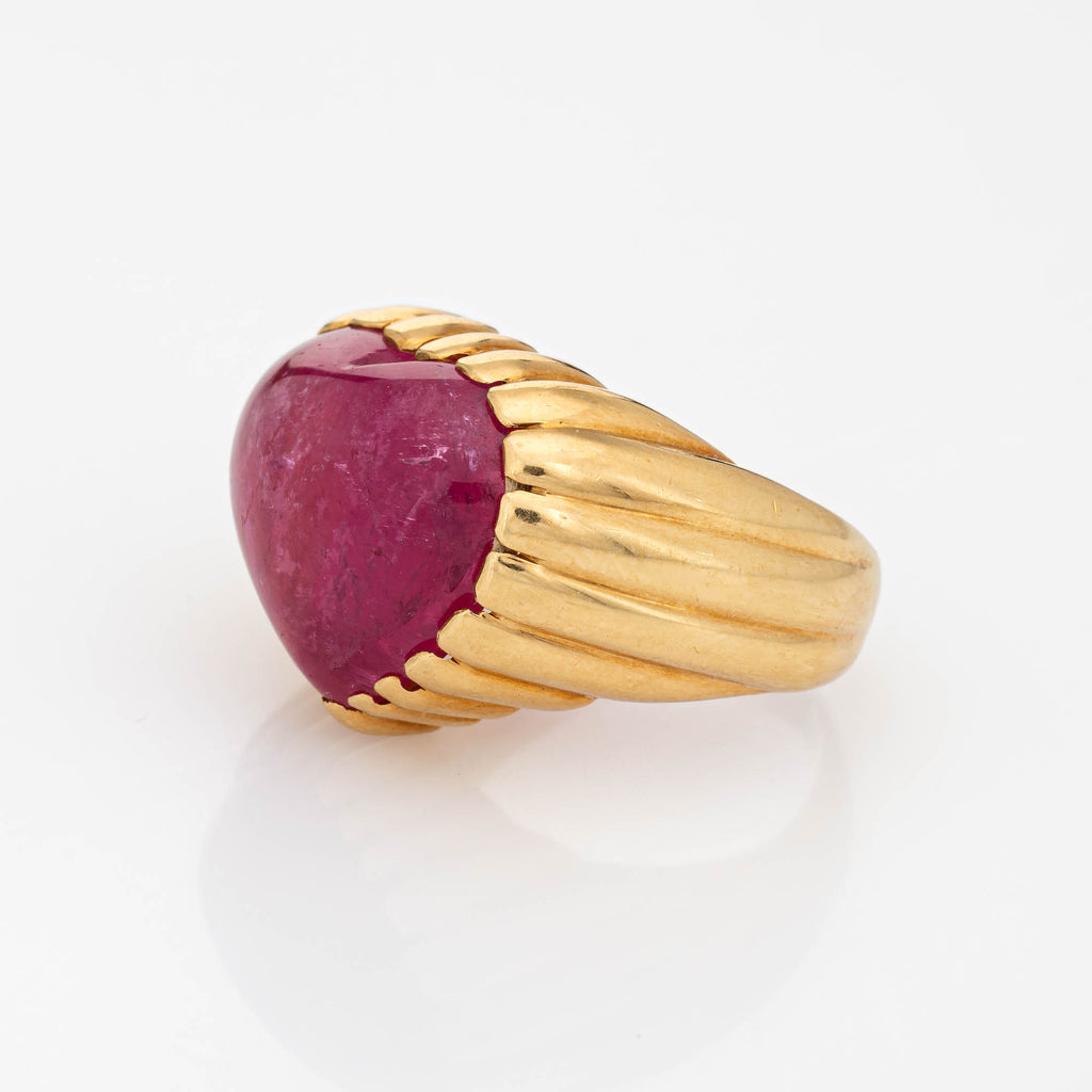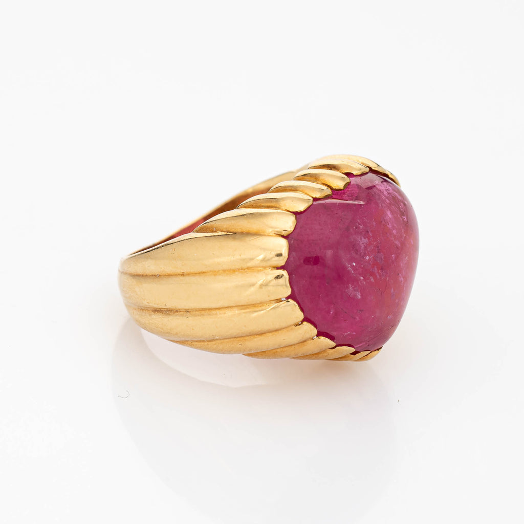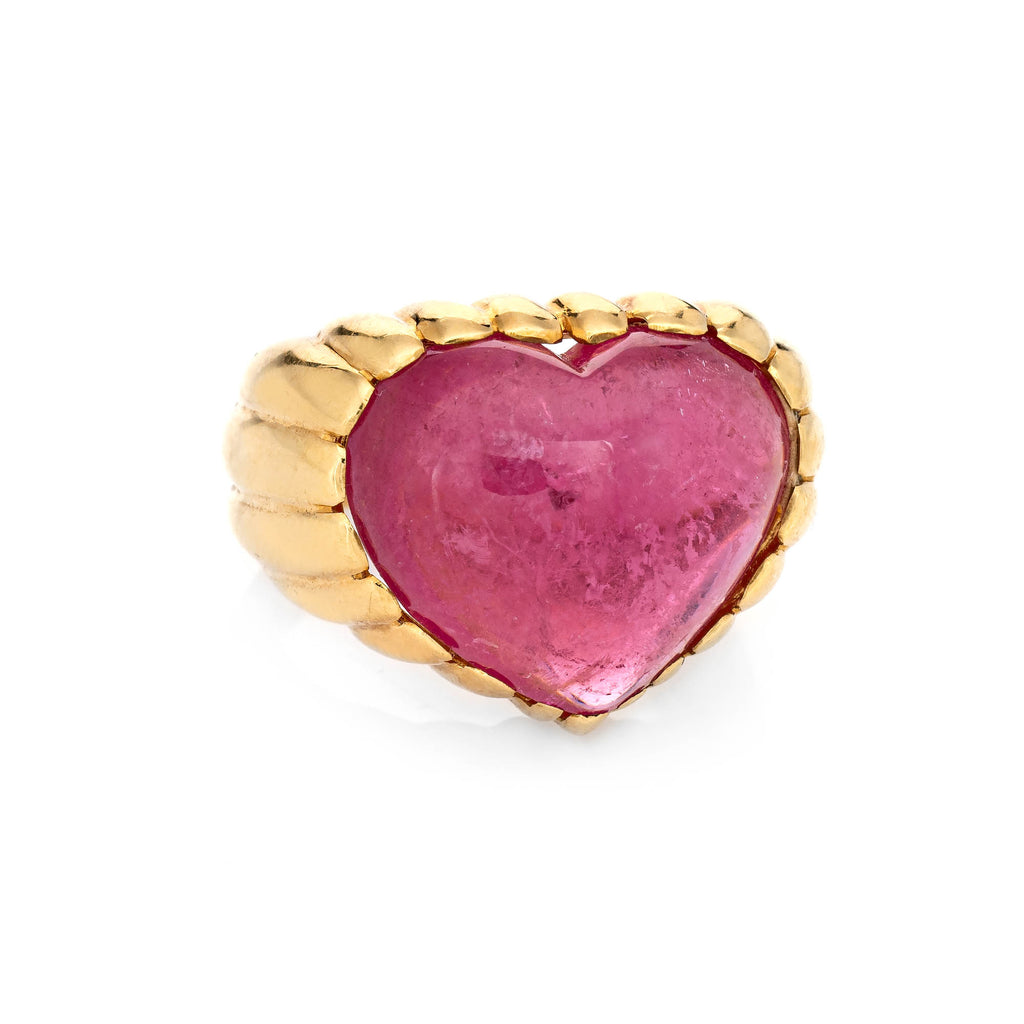 Stylish vintage heart cut pink tourmaline ring (circa 1980s to 1990s) crafted in 18 karat yellow gold.