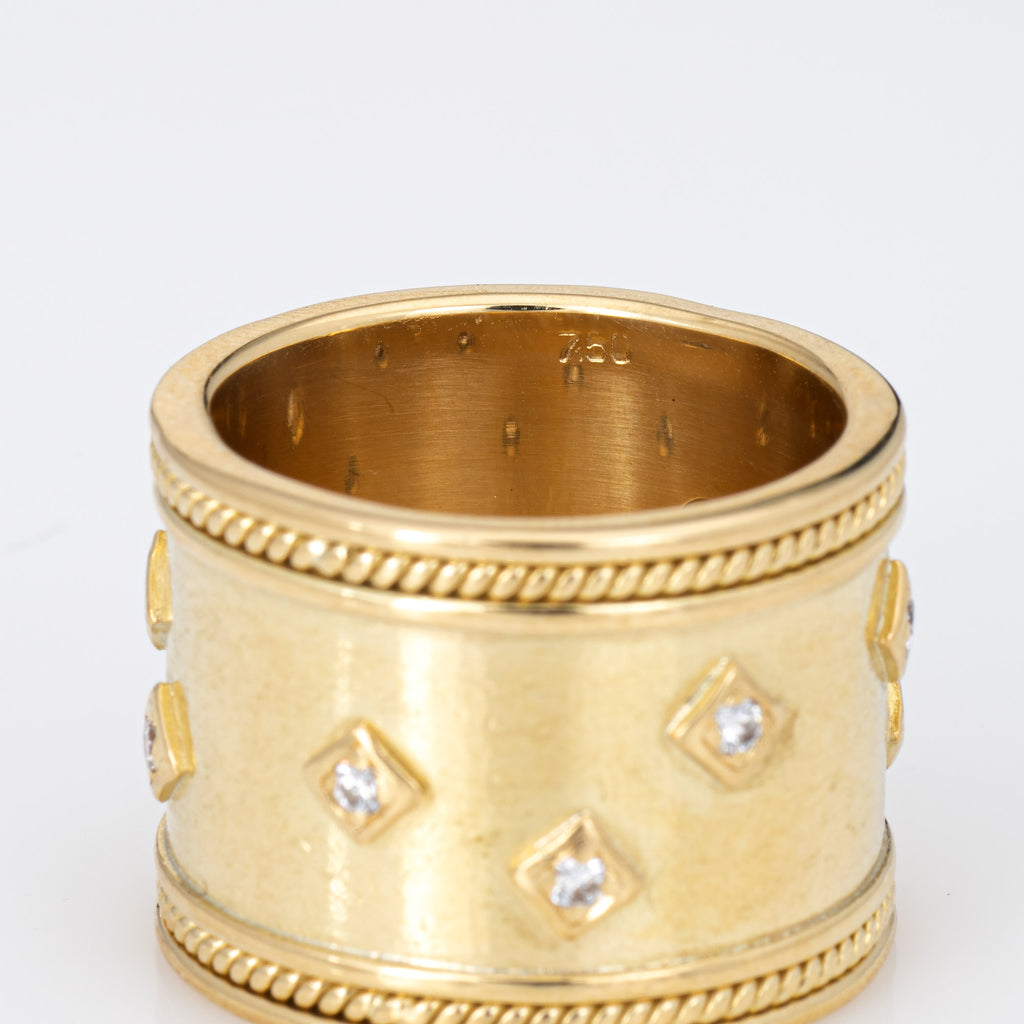 Stylish vintage wide band cigar diamond ring crafted in 18 karat yellow gold.