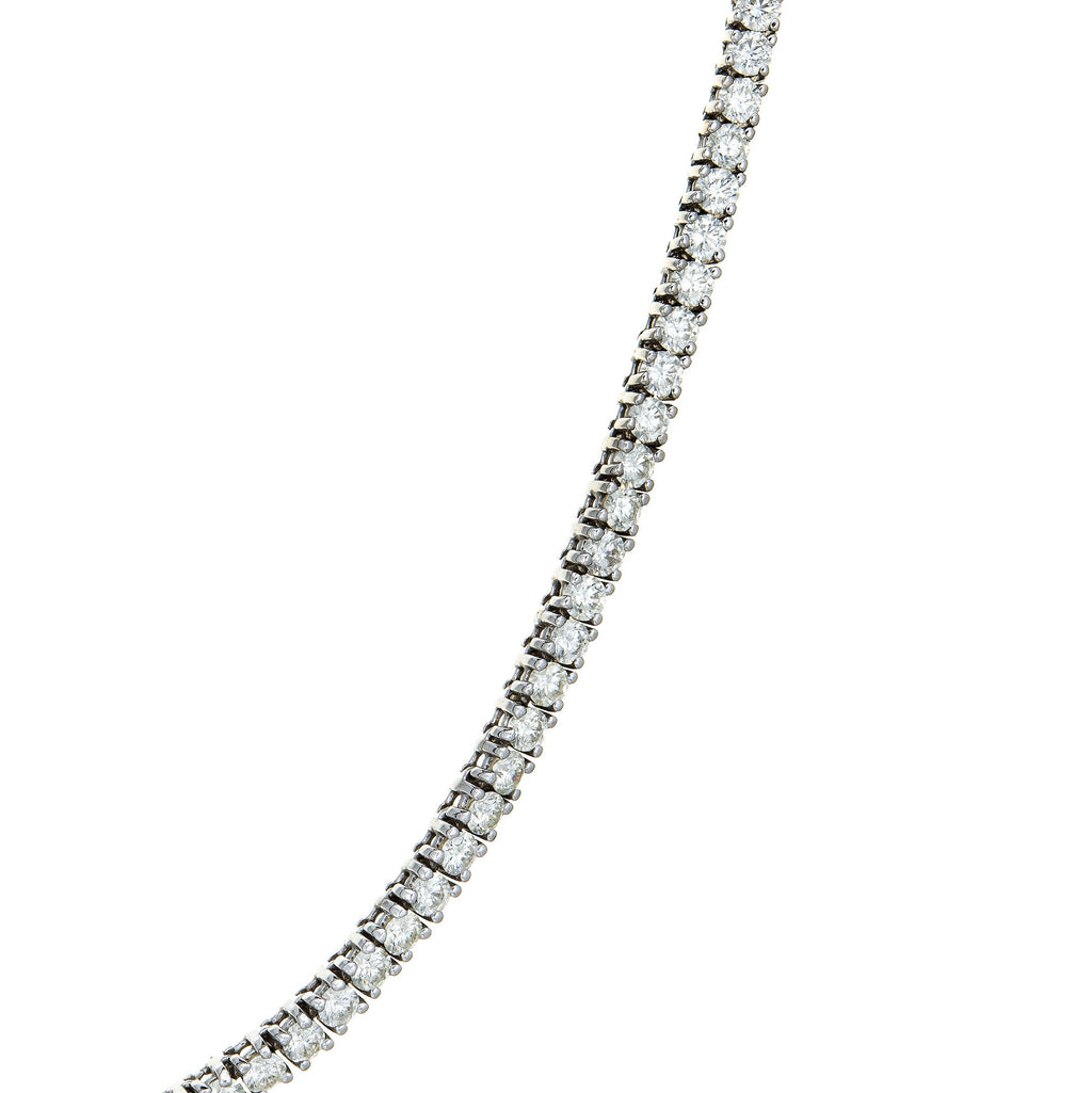Stylish estate 18.50 carat diamond riviera necklace crafted in 14 karat white gold.