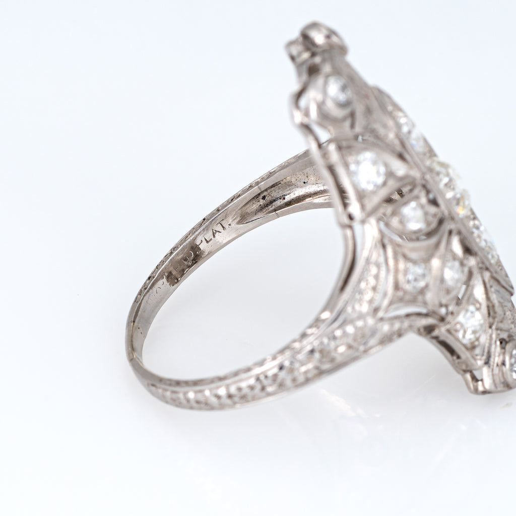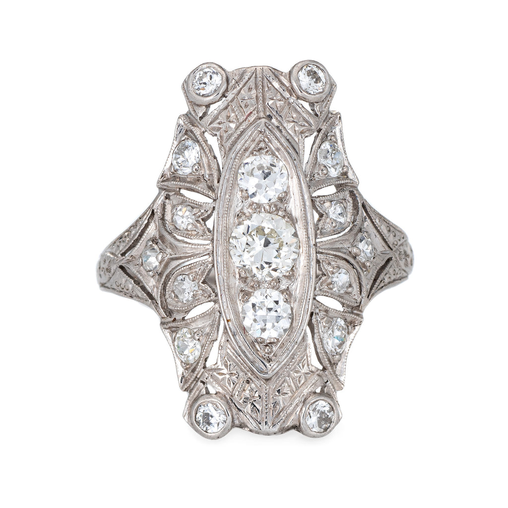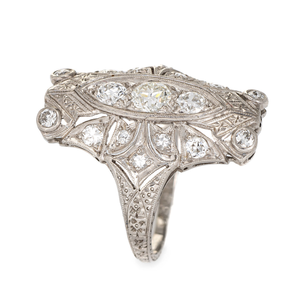 Finely detailed vintage Art Deco era ring (circa 1920s to 1930s) crafted in 900 platinum.