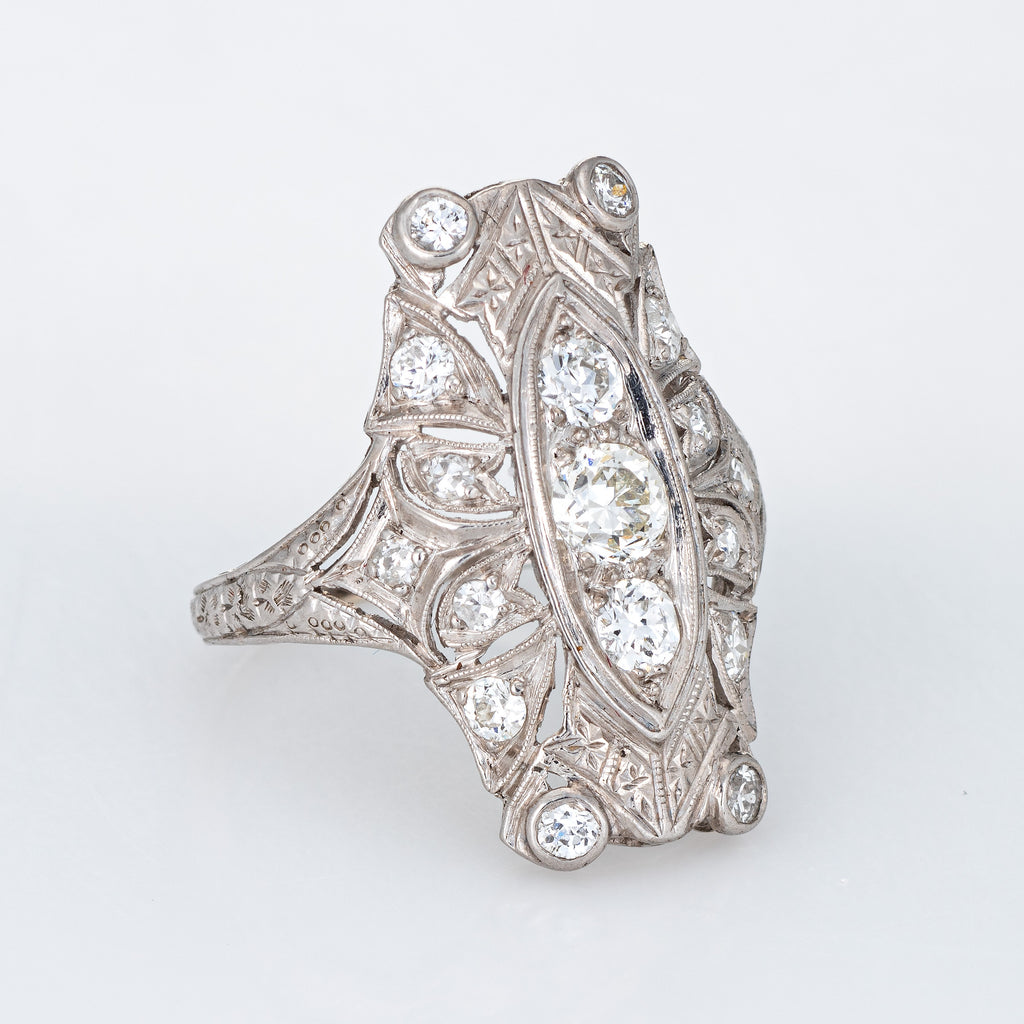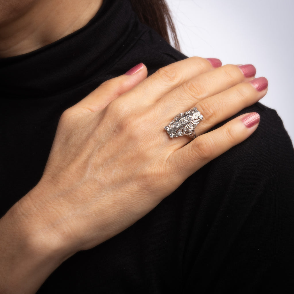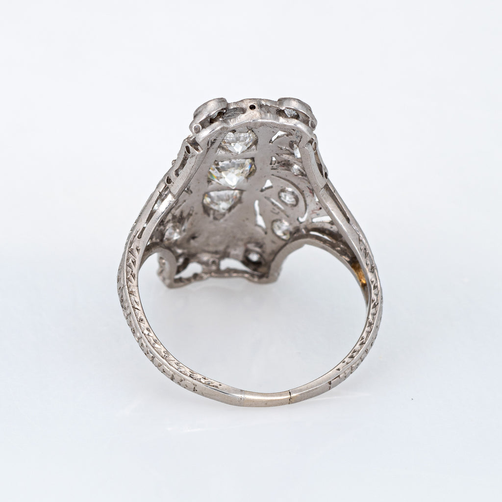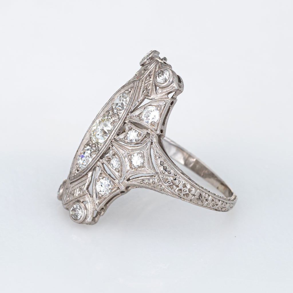 Finely detailed vintage Art Deco era ring (circa 1920s to 1930s) crafted in 900 platinum.