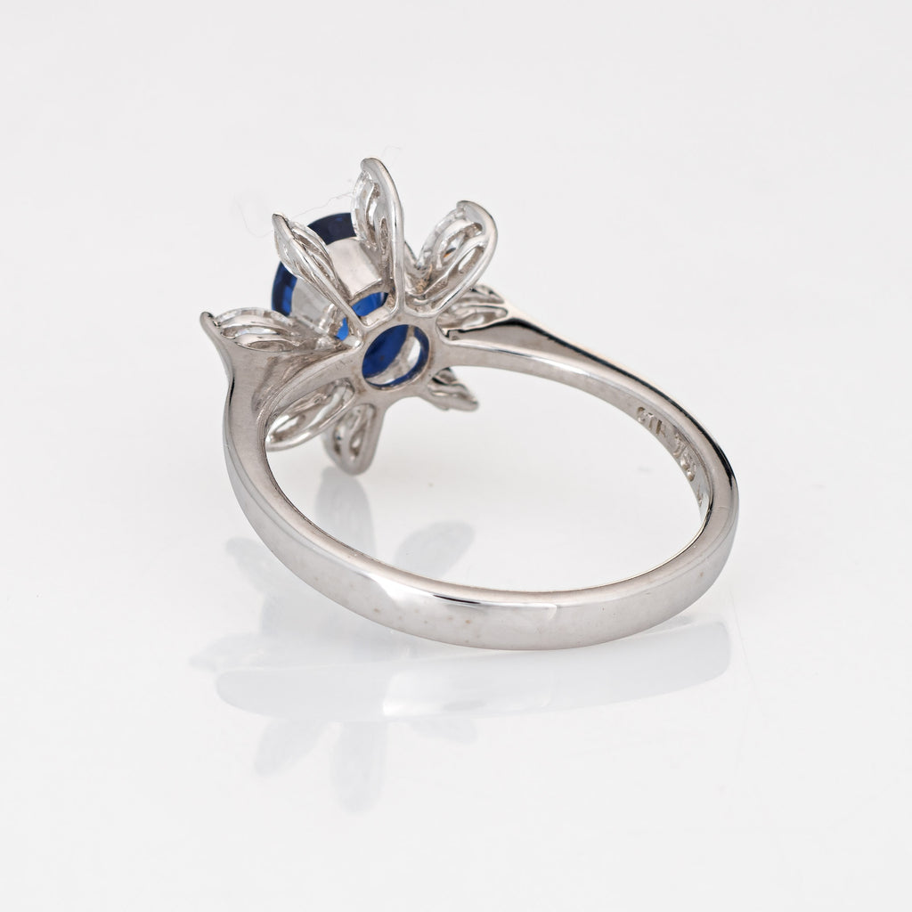 1ct Royal Blue Sapphire Diamond Ring Estate 18k White Gold Gemstone Engagement