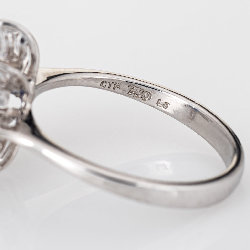 Metal & Hallmark: 18 karat white gold. The ring is hallmarked "750" for 18k gold.
