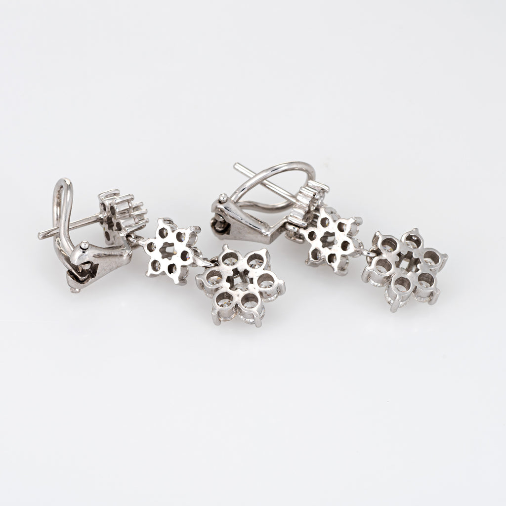 2.25ct Diamond Drop Earrings Estate 18k White Gold Flowers Three Tier Jewelry