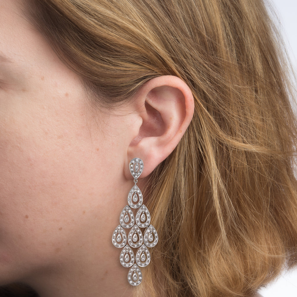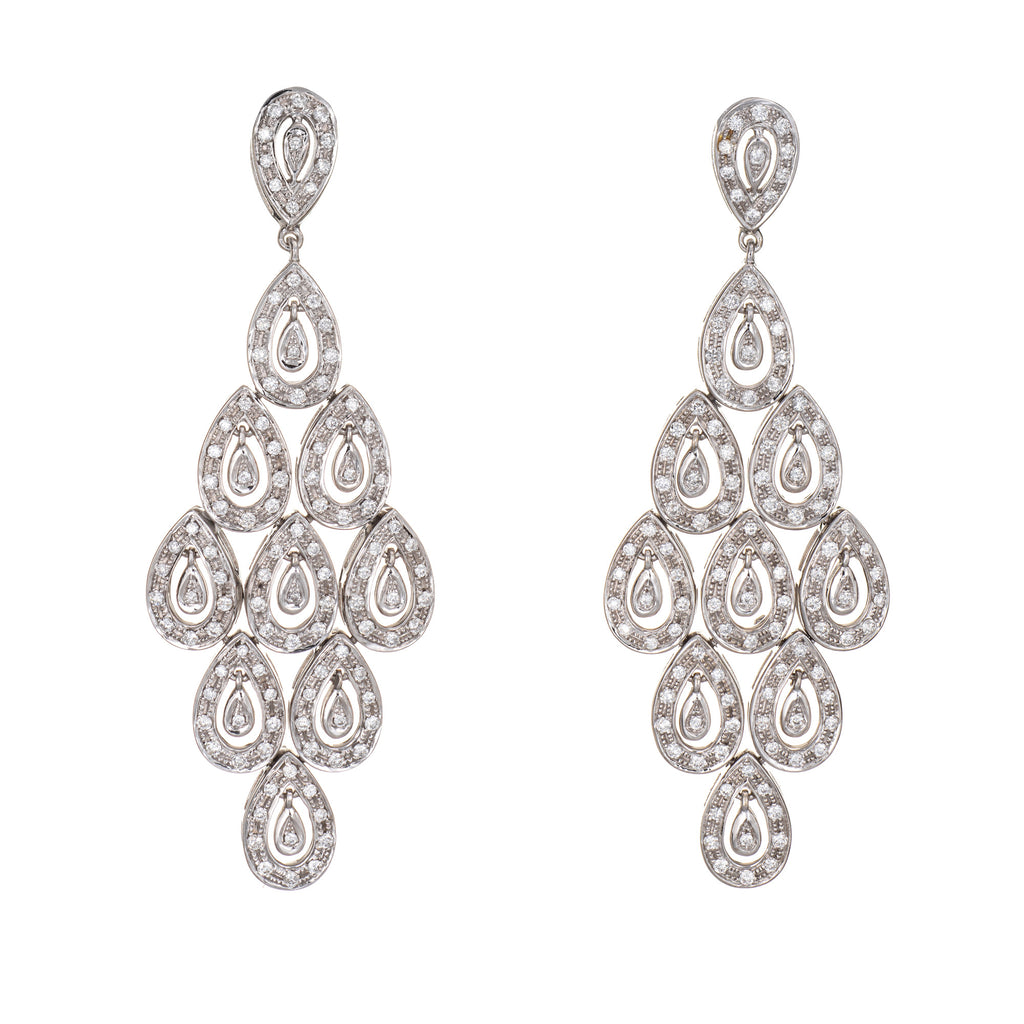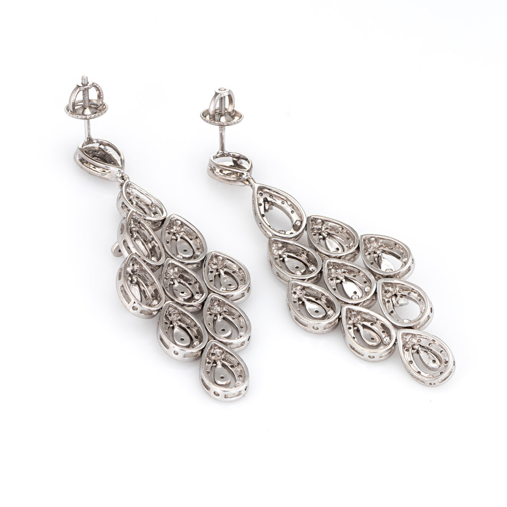 Elegant pair of diamond chandelier earrings crafted in 14k white gold.
