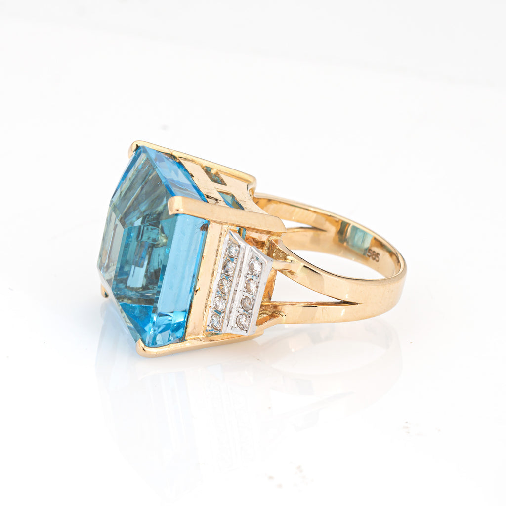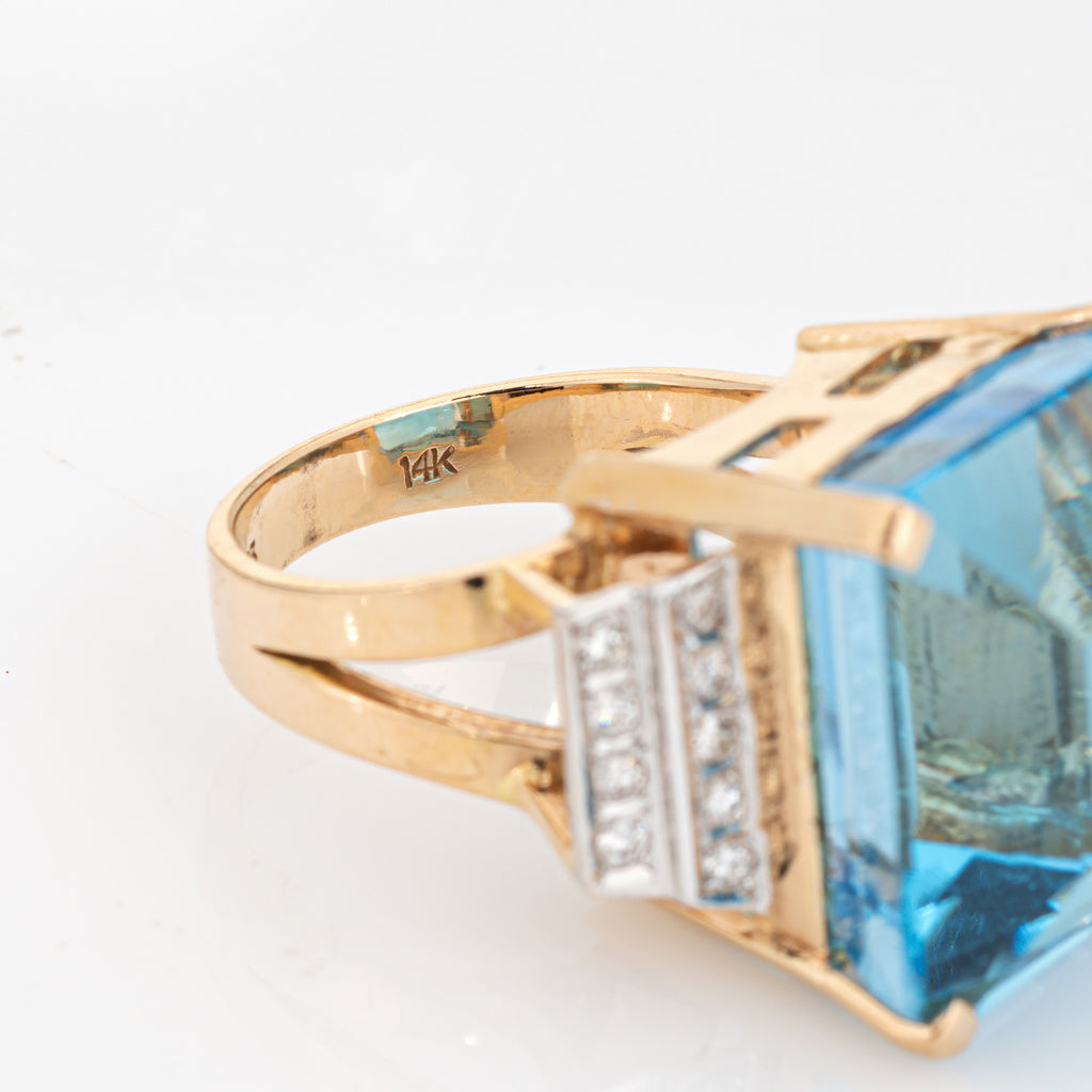 35ct Blue Topaz Diamond Ring Vintage 14k Yellow Gold Large Cocktail Jewelry Sz 7