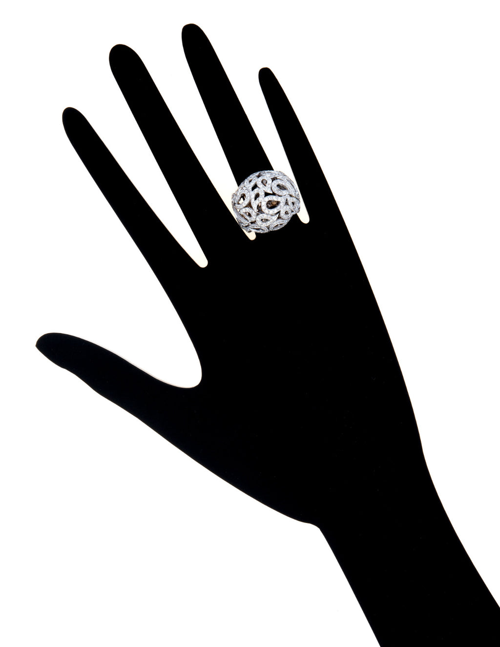 The ring features a distinct openwork bombe design and makes a great statement on the hand! The high rise ring (12mm - 0.47 inches) sits comfortably on the finger.