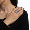 Size & Measurements: The ring is a size 7 (sizable). The mount measures 29mm in length (1.14 inches) and 25mm wide (0.98 inches) rising 7mm from the finger.