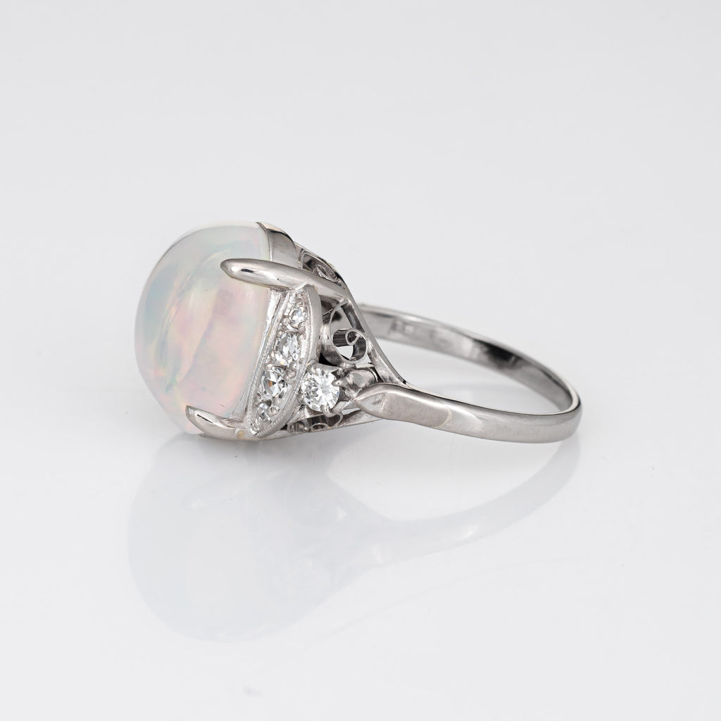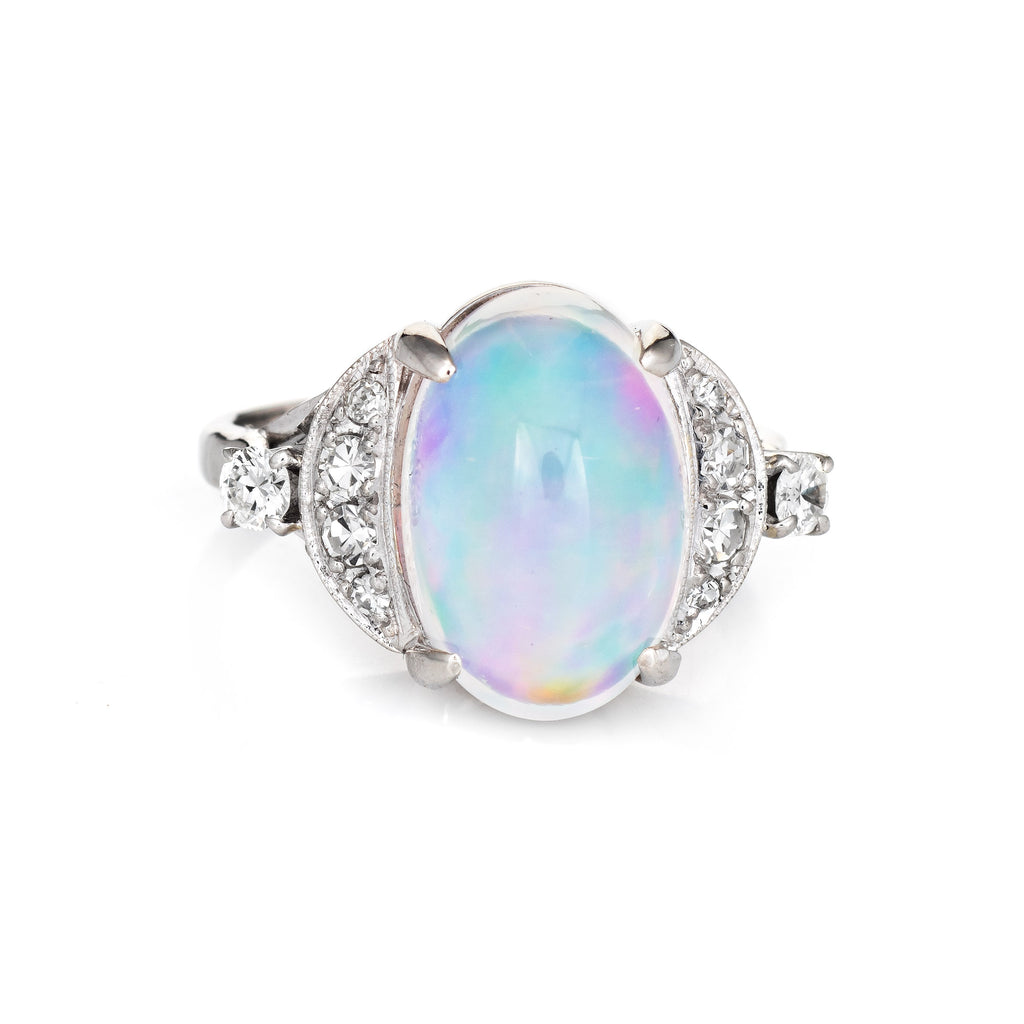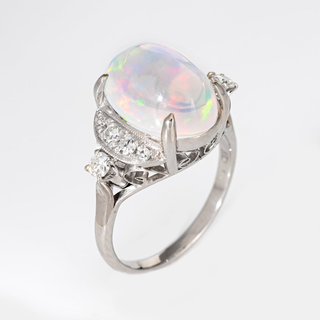 4.92ct Natural Jelly Opal Diamond Ring Platinum Estate Fine Jewelry Sz 5.75