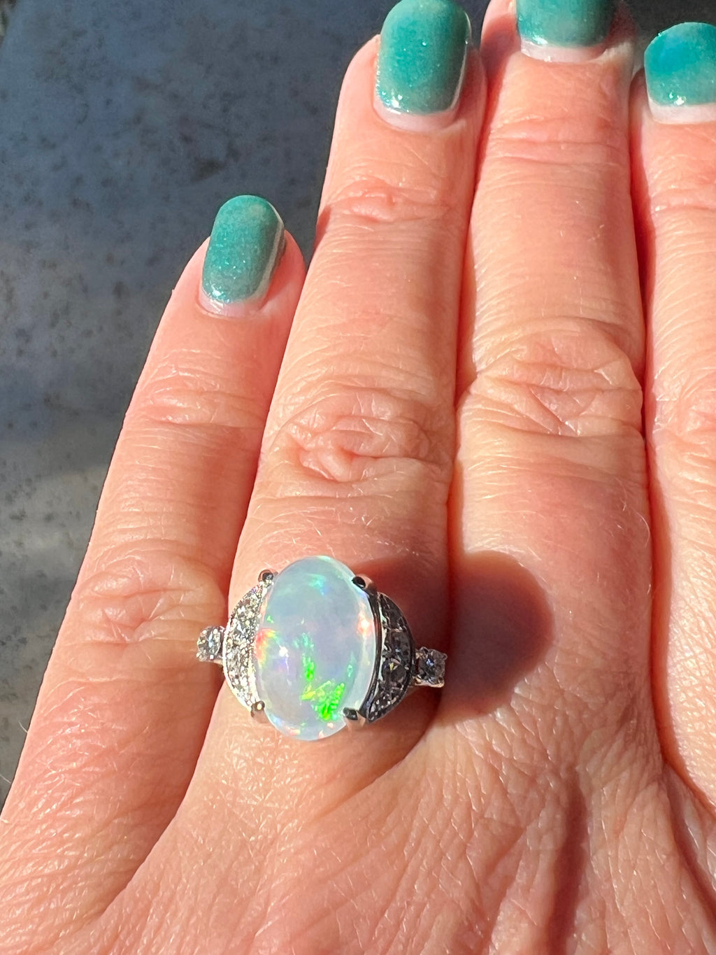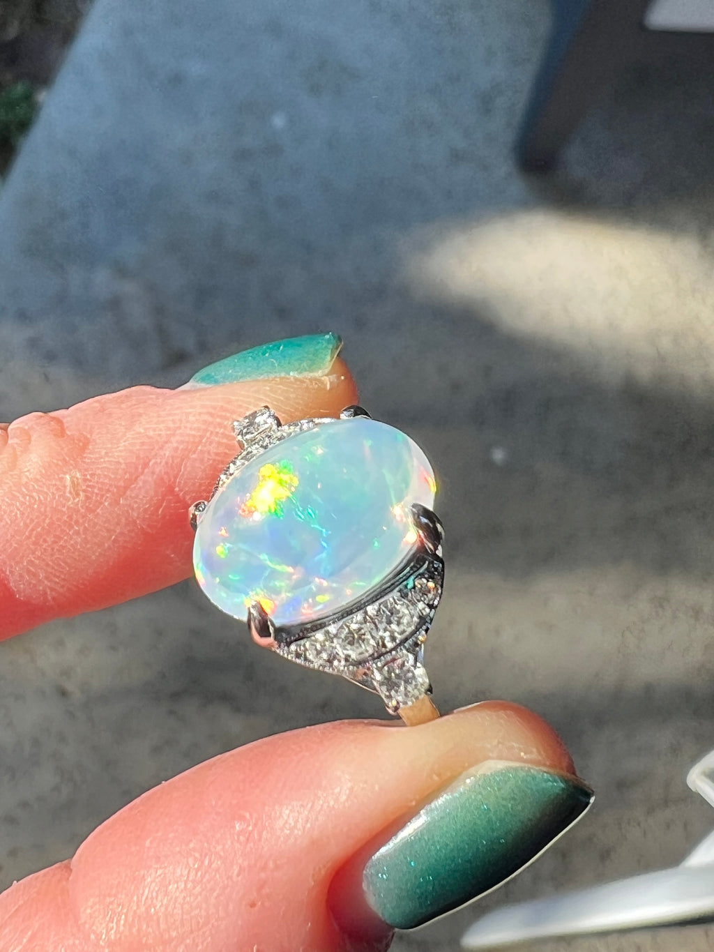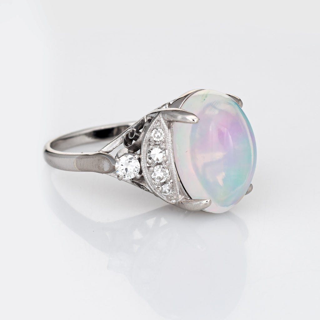 4.92ct Natural Jelly Opal Diamond Ring Platinum Estate Fine Jewelry Sz 5.75
