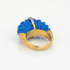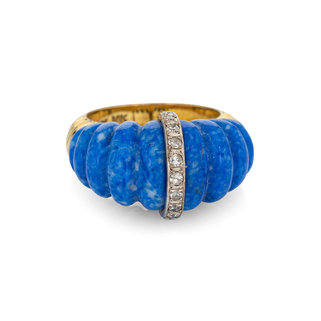 Stylish vintage fluted lapis lazuli & diamond cocktail ring (circa 1960s) crafted in 14 karat yellow gold.