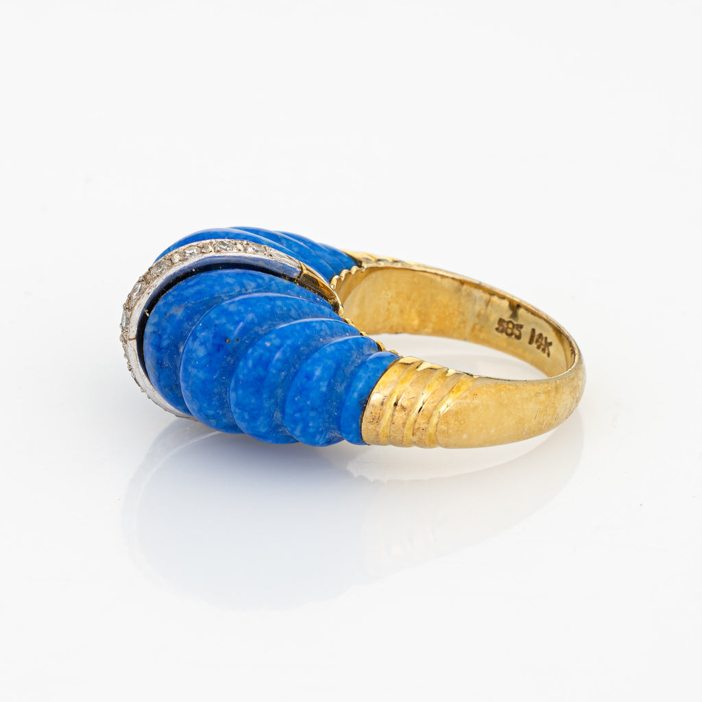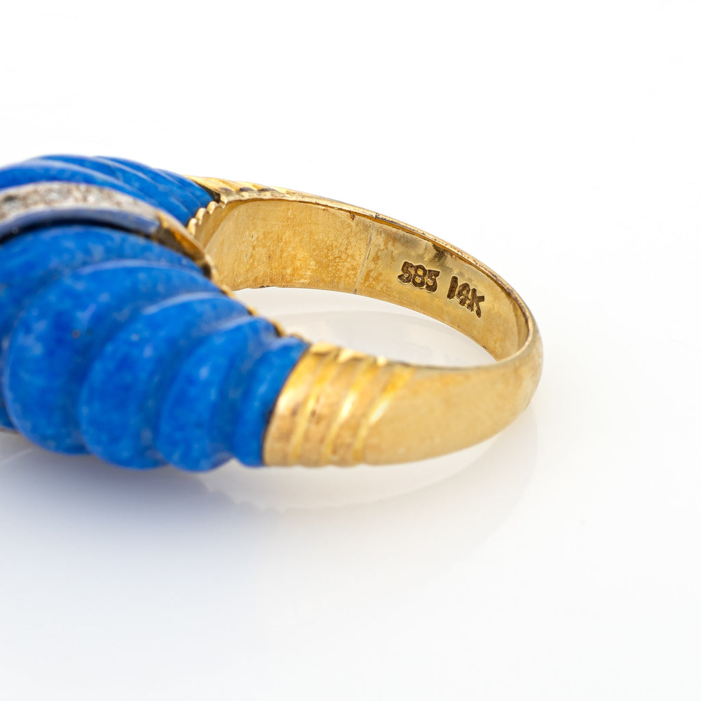 60s Fluted Lapis Lazuli Diamond Ring Vintage 14k Yellow Gold Sz 7 Jewelry