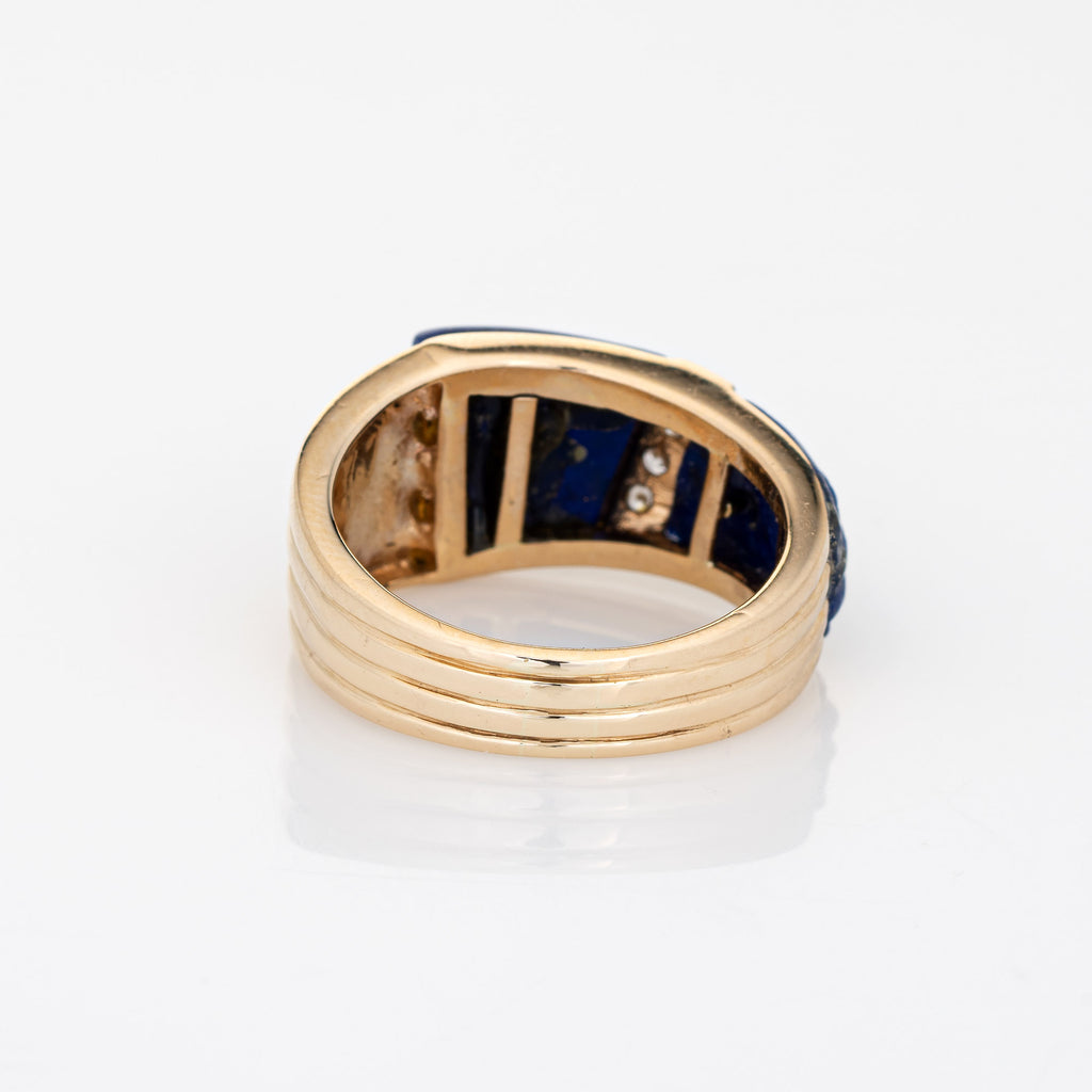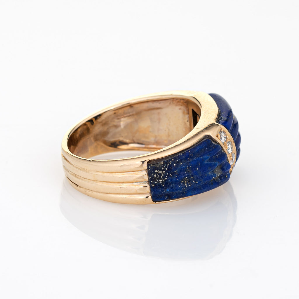 70s Fluted Lapis Lazuli Diamond Ring Vintage 14k Yellow Gold Sz 7 Fine Jewelry