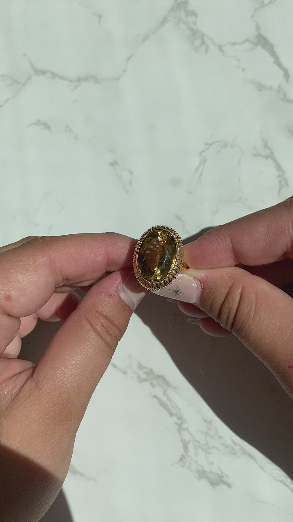 Stones: Faceted oval cut citrine measures 18mm x 13mm (estimated at 9 carats). The citrine is in very good condition and free of cracks or chips.