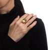 Metal & Hallmark: 14 karat yellow gold. The ring is not hallmarked though it has tested positive for 14k gold.