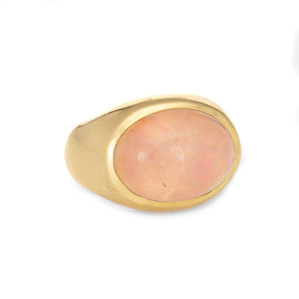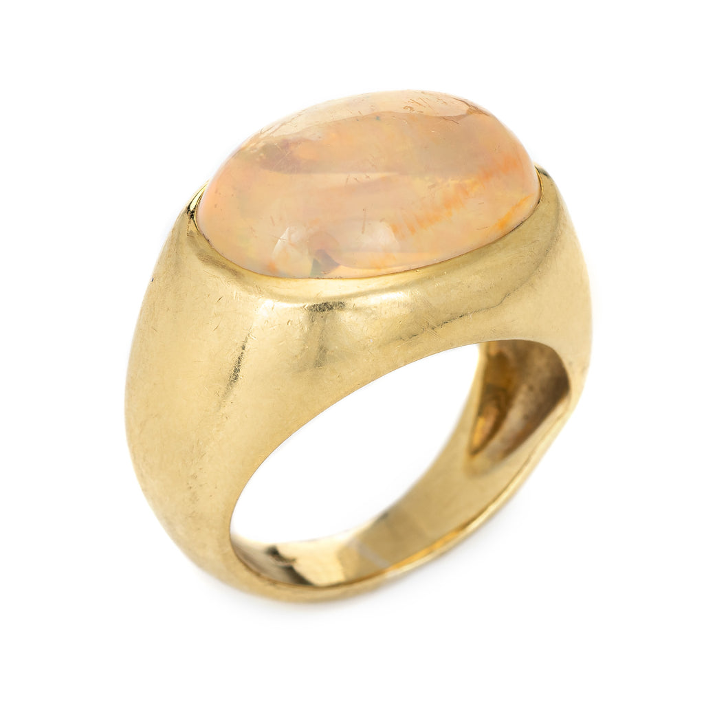 Stylish vintage natural jelly opal ring crafted in 18 karat yellow gold.