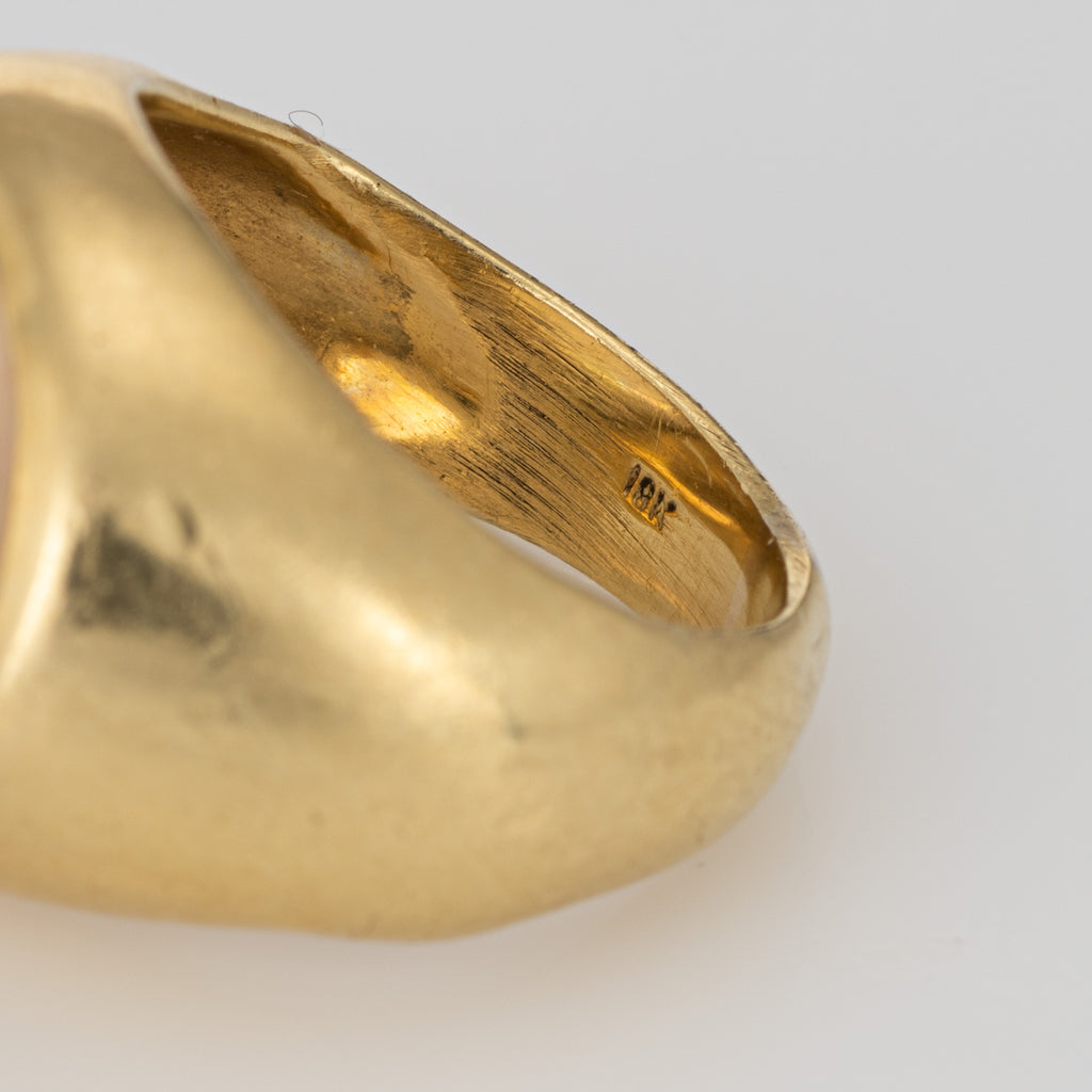 Metal & Hallmark: 18 karat yellow gold. The ring is hallmarked "18k"