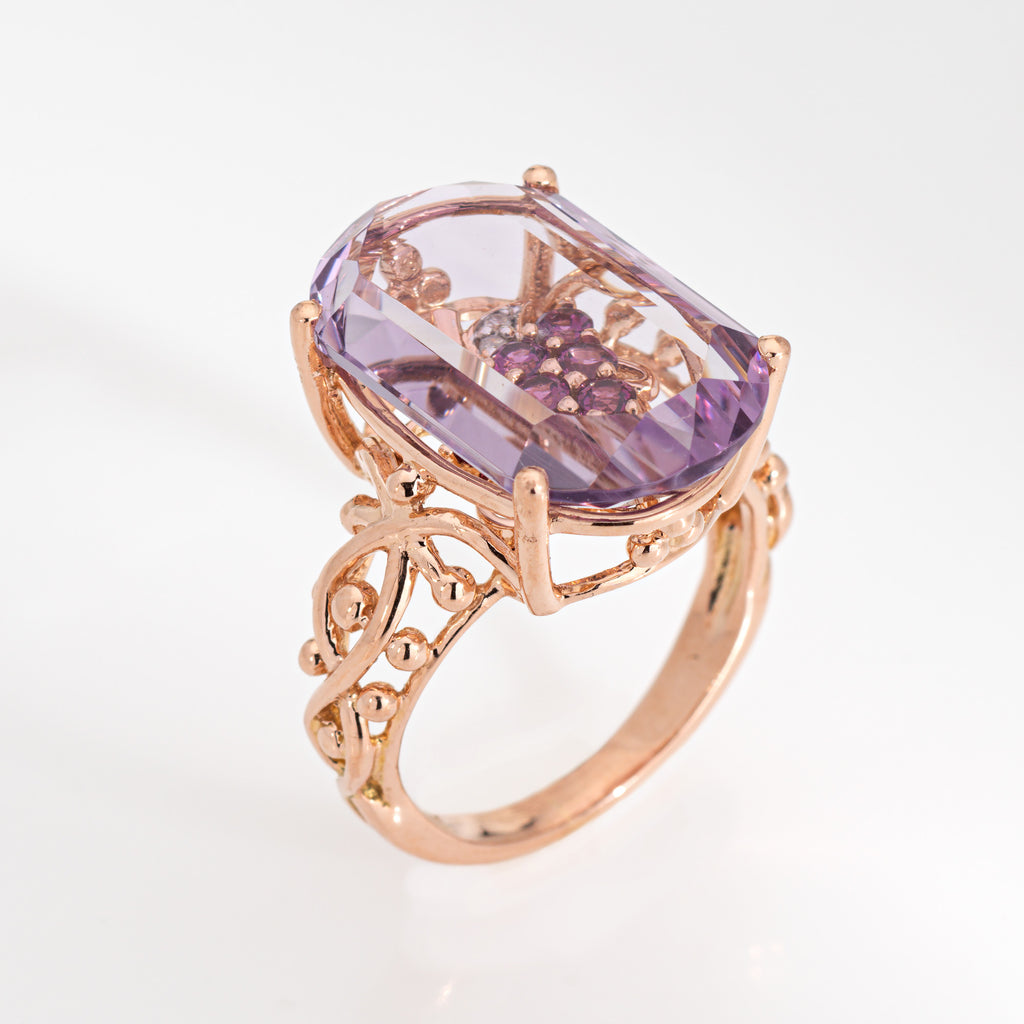 Amethyst Grape Ring Estate 14k Rose Gold Sz 6.5 Diamond Fine Cocktail Jewelry