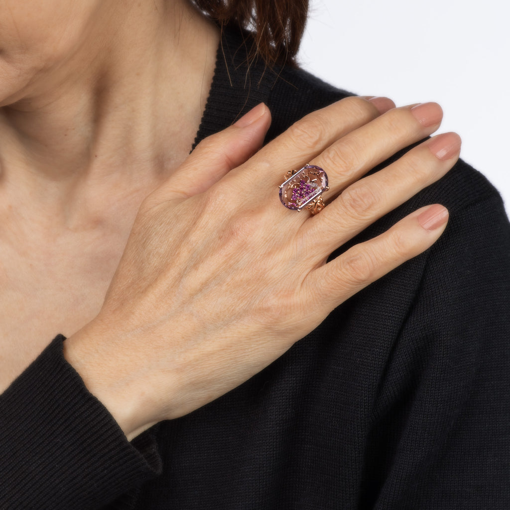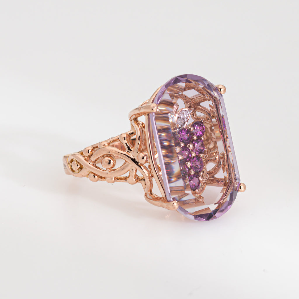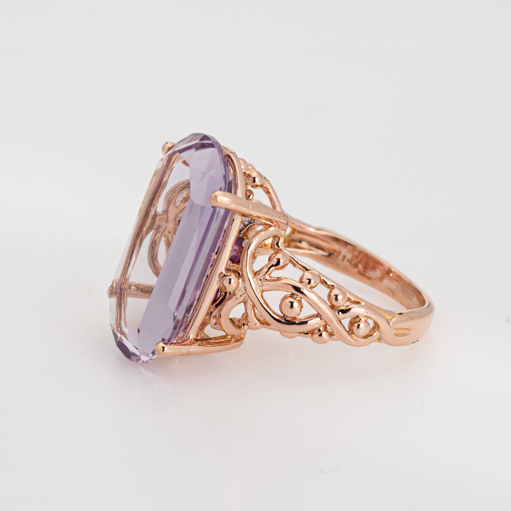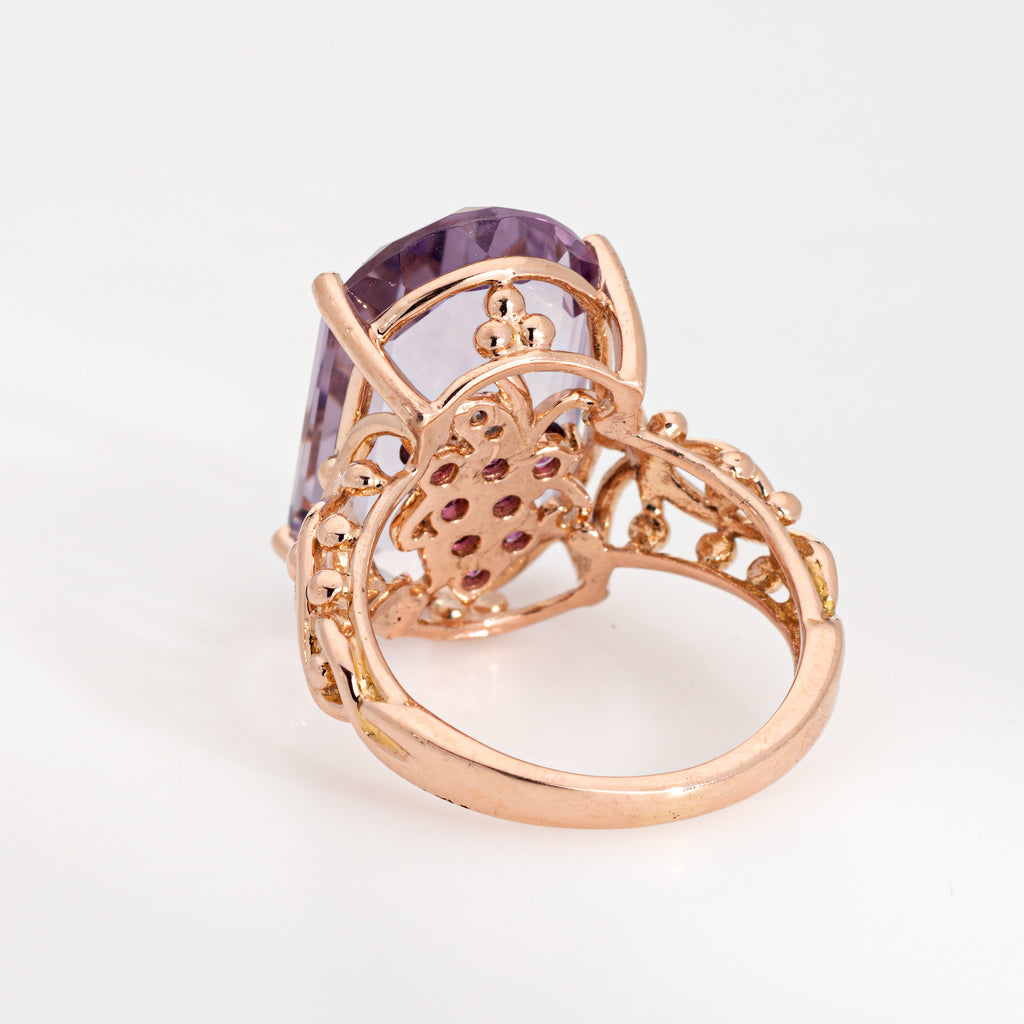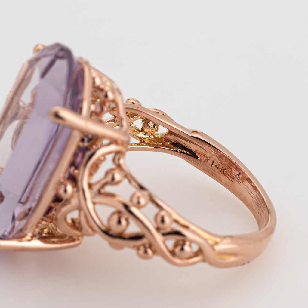 Stylish amethyst cocktail ring crafted in 14 karat rose gold.