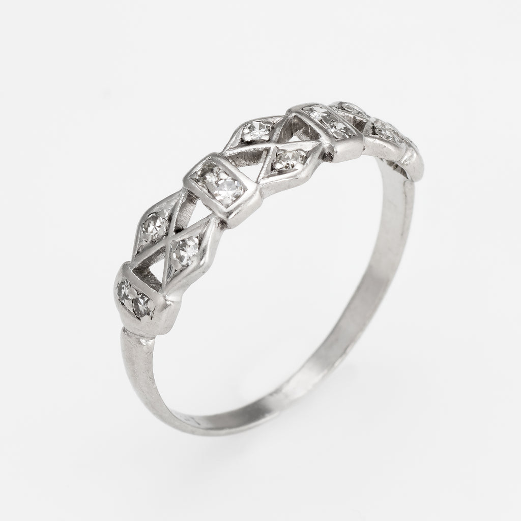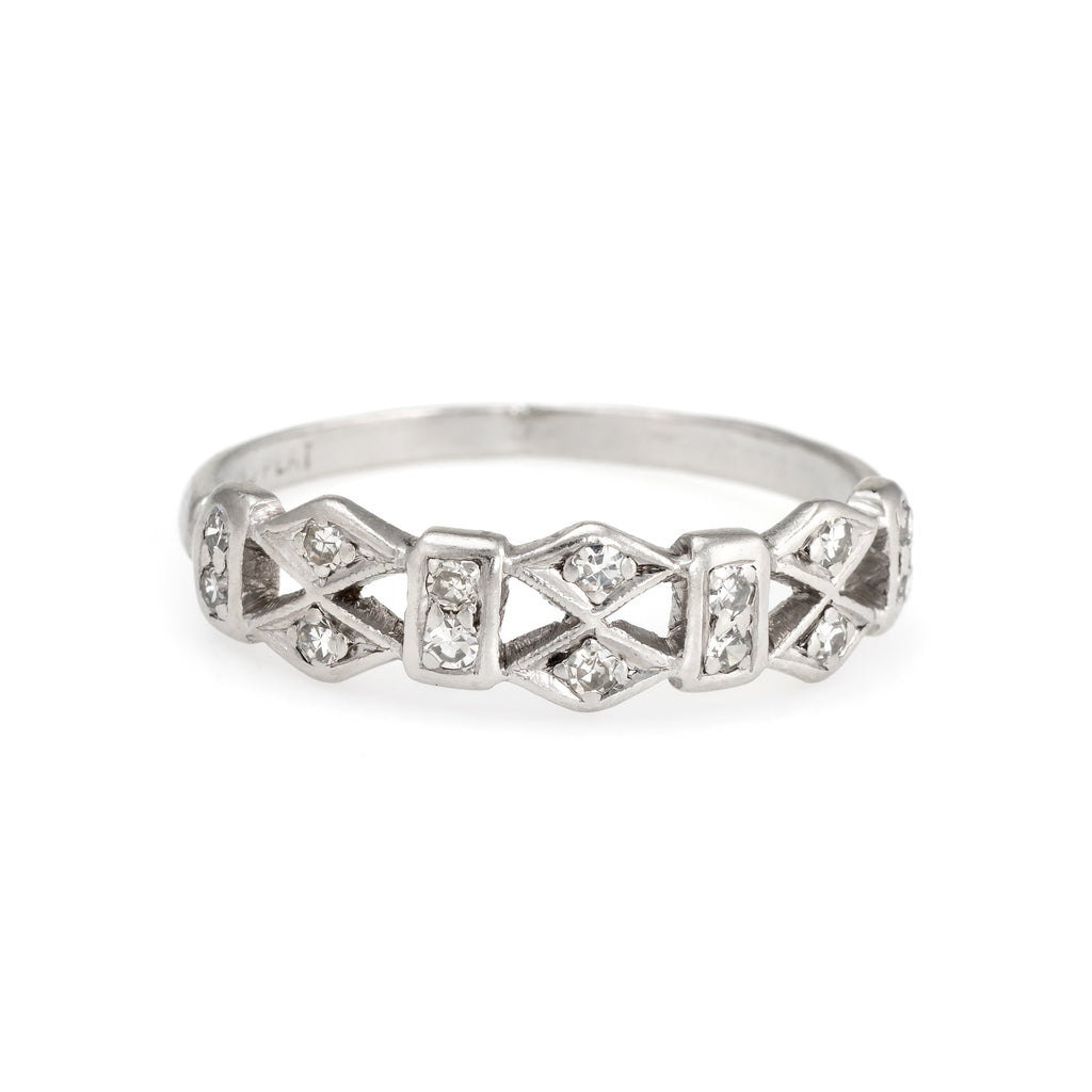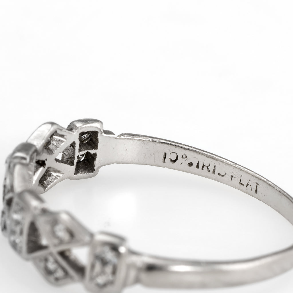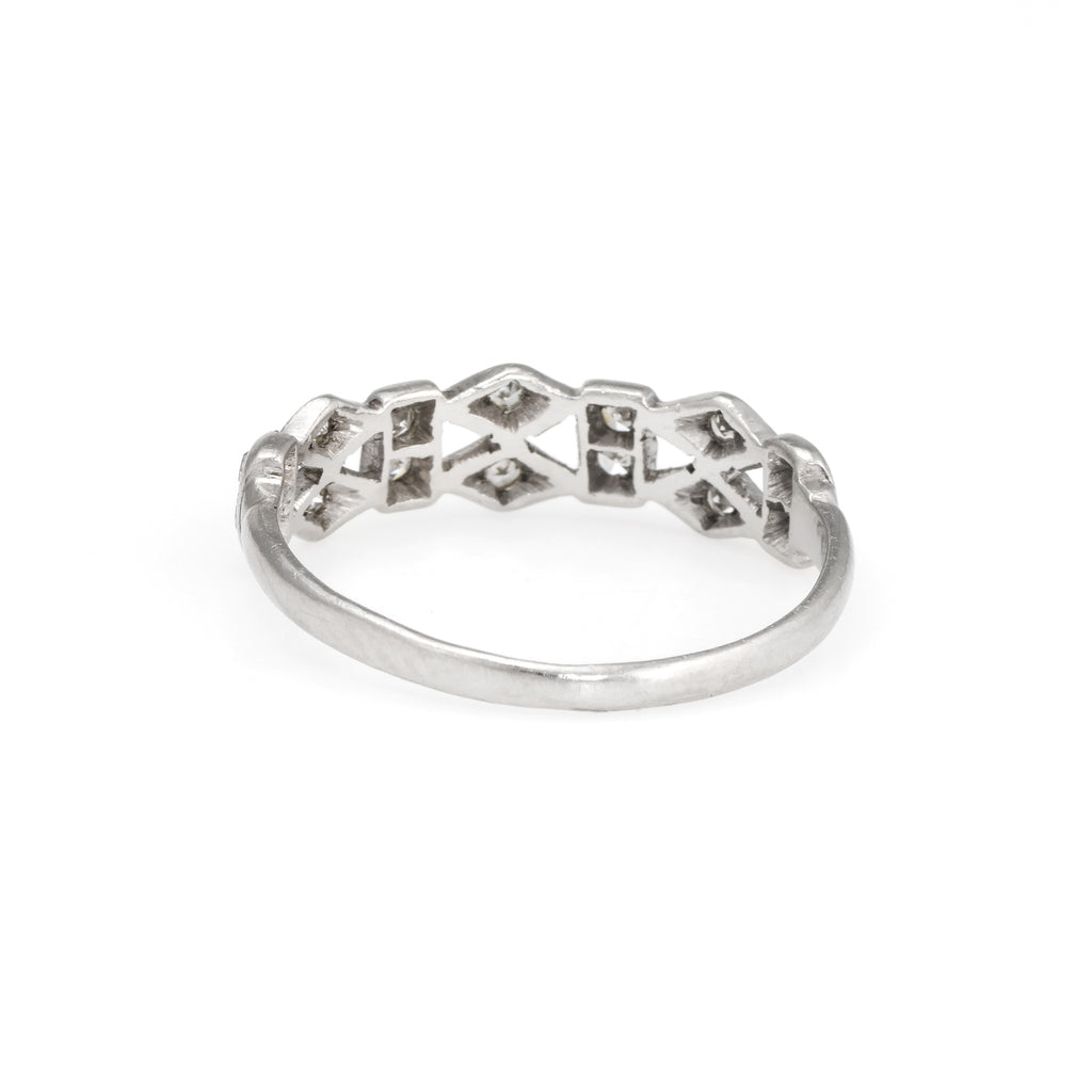 Antique Deco Diamond Band Platinum Ring Geometric Pattern Vintage Fine Jewelry