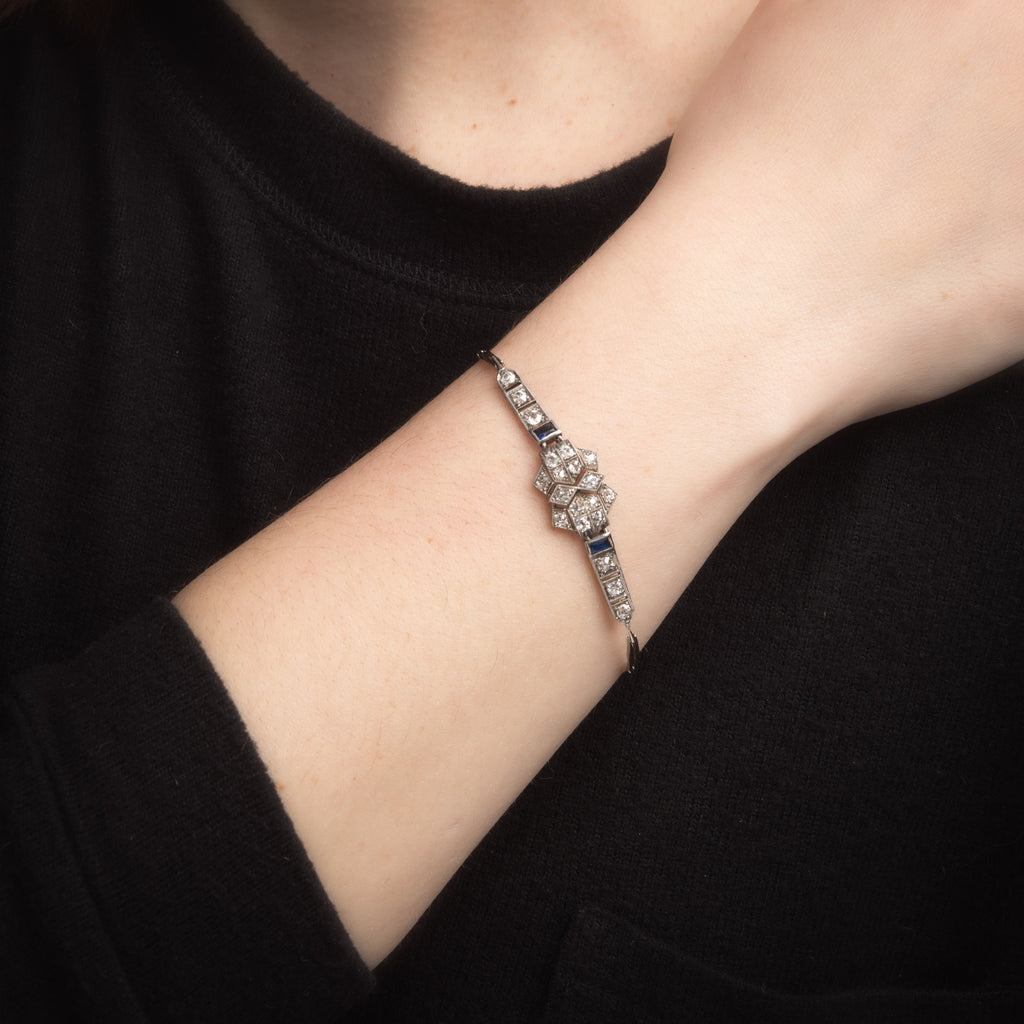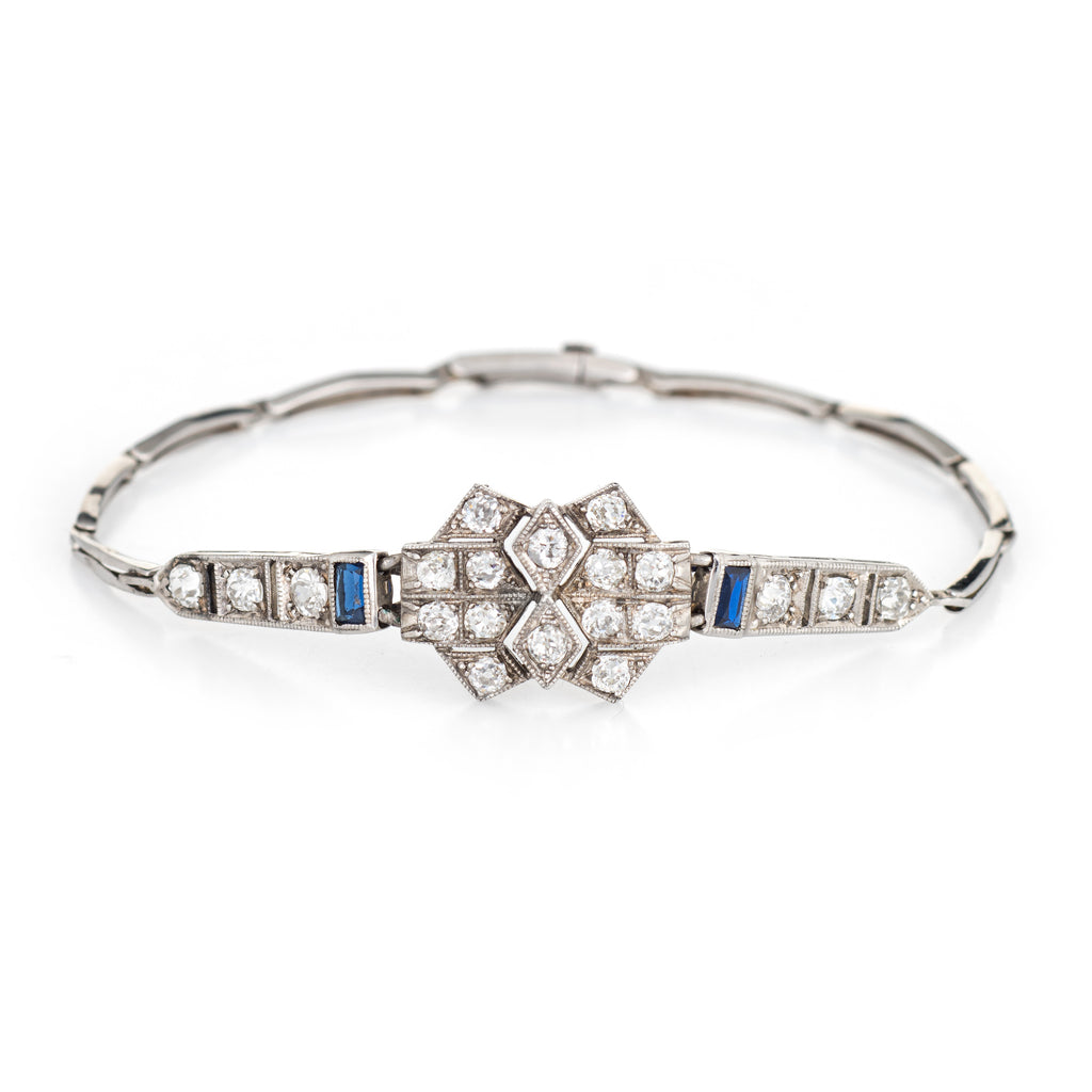 Stylish and elegant vintage Art Deco era bracelet (circa 1920s to 1930s) crafted in 18k white gold & 900 platinum.