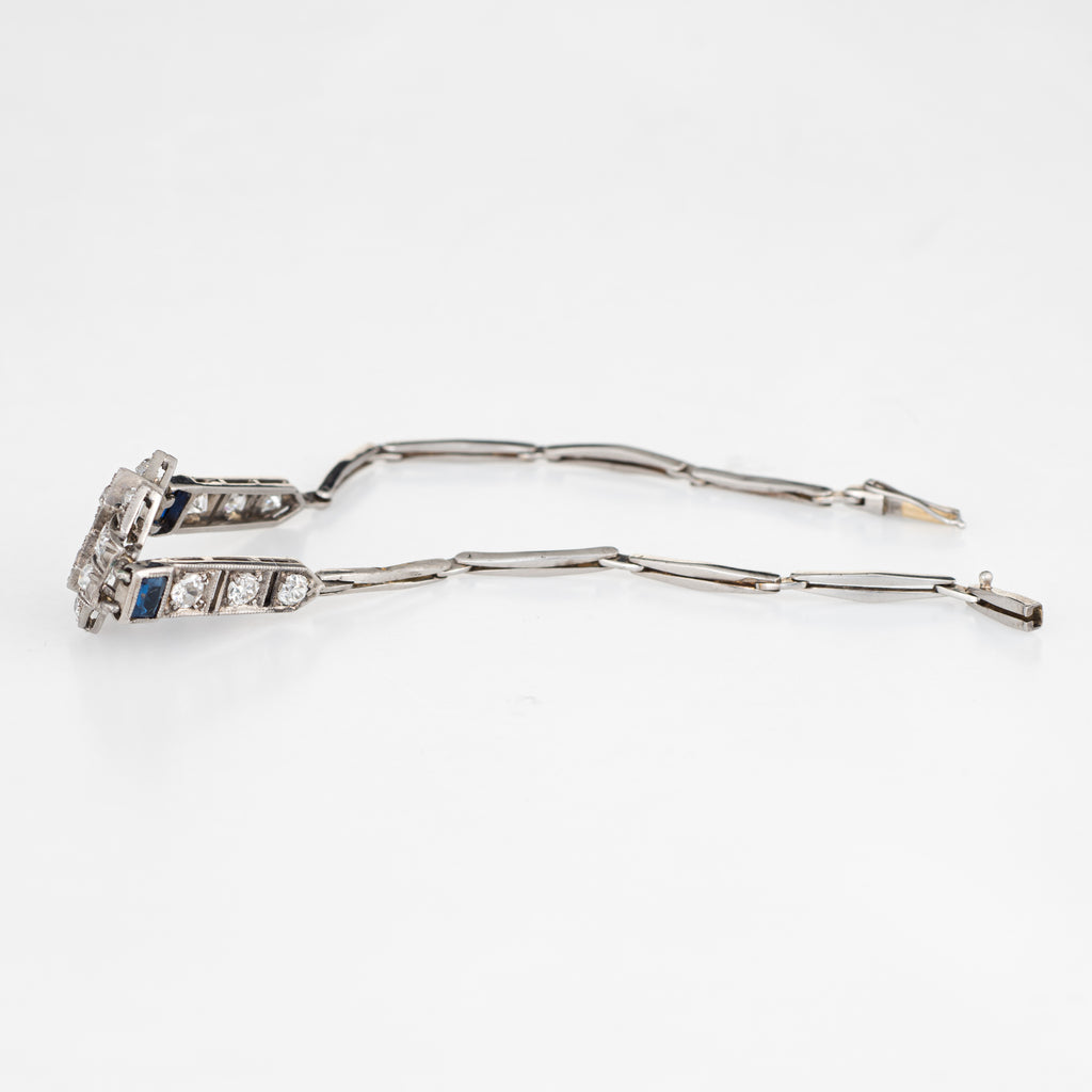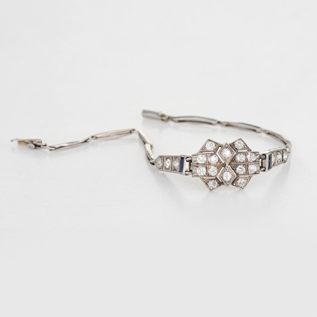 Metal & Hallmark: 900 platinum & 18 karat white gold (bracelet links). The bracelet is not hallmarked though it has tested positive for platinum & 18k gold.