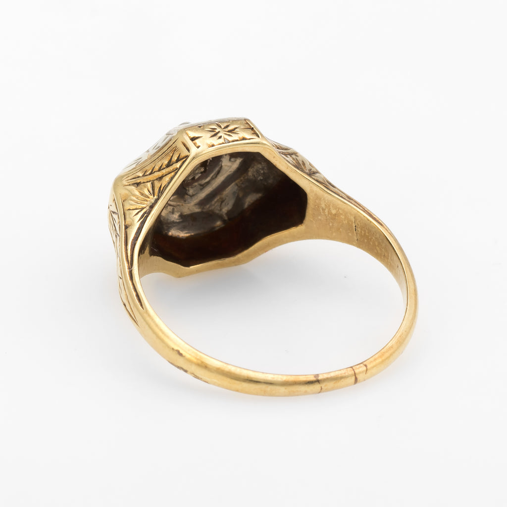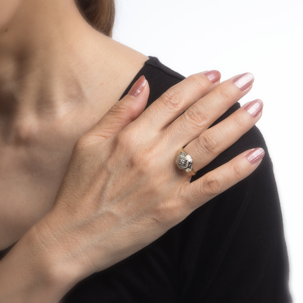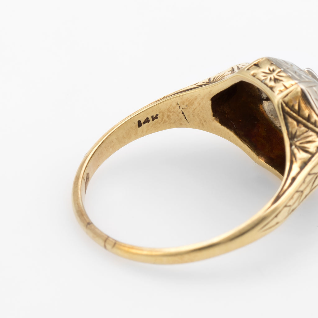 Antique Deco Two Tone Diamond Ring Vintage 14k Gold Estate Fine Jewelry Etched