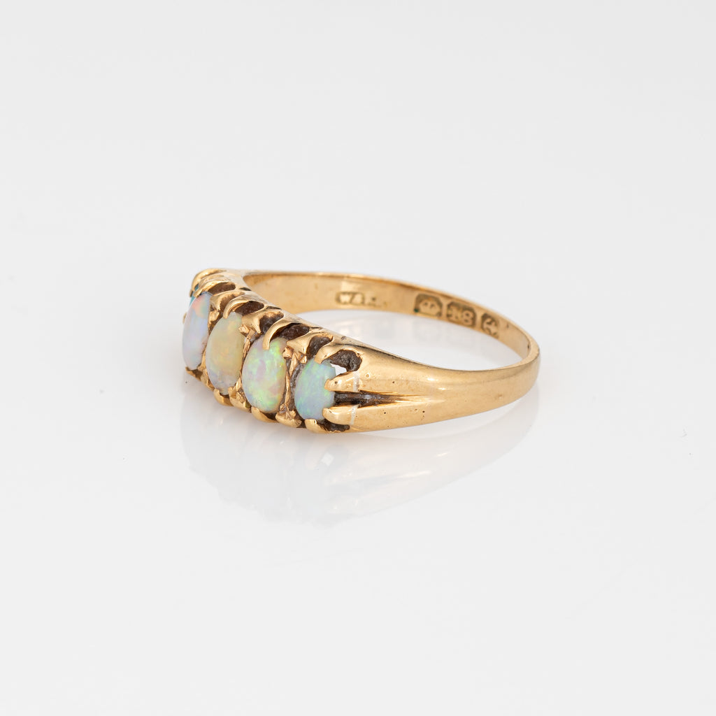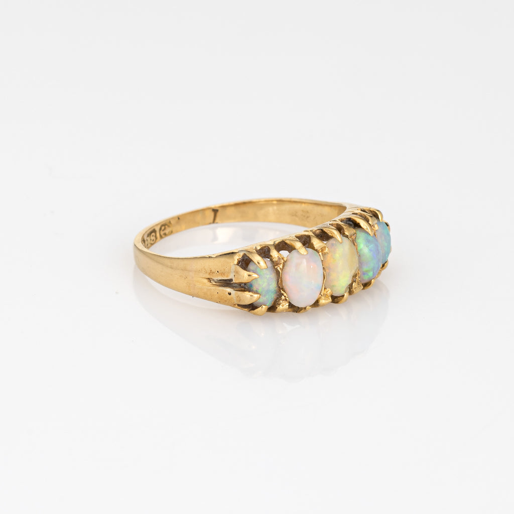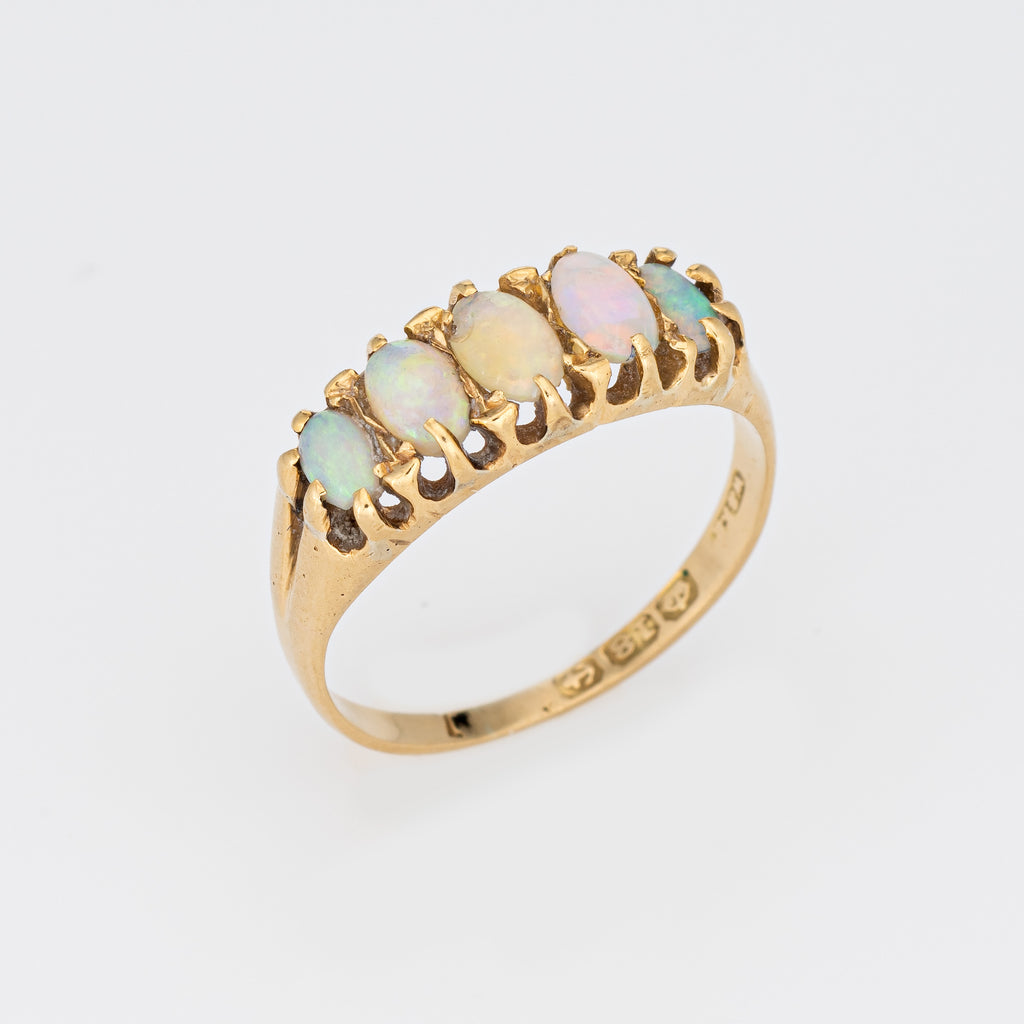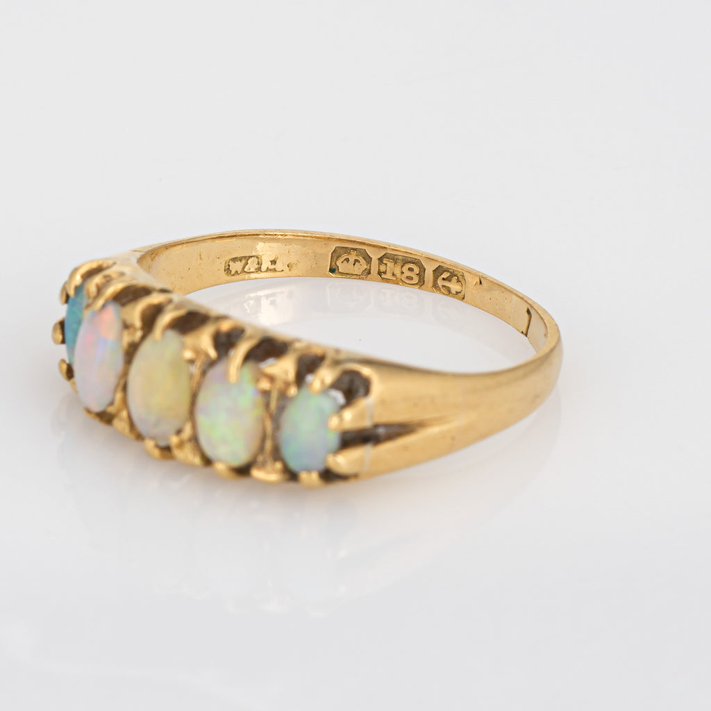 Antique Edwardian Opal Ring 5 Stone 18k Yellow Gold Band Sz 4.75 UK Hallmarks