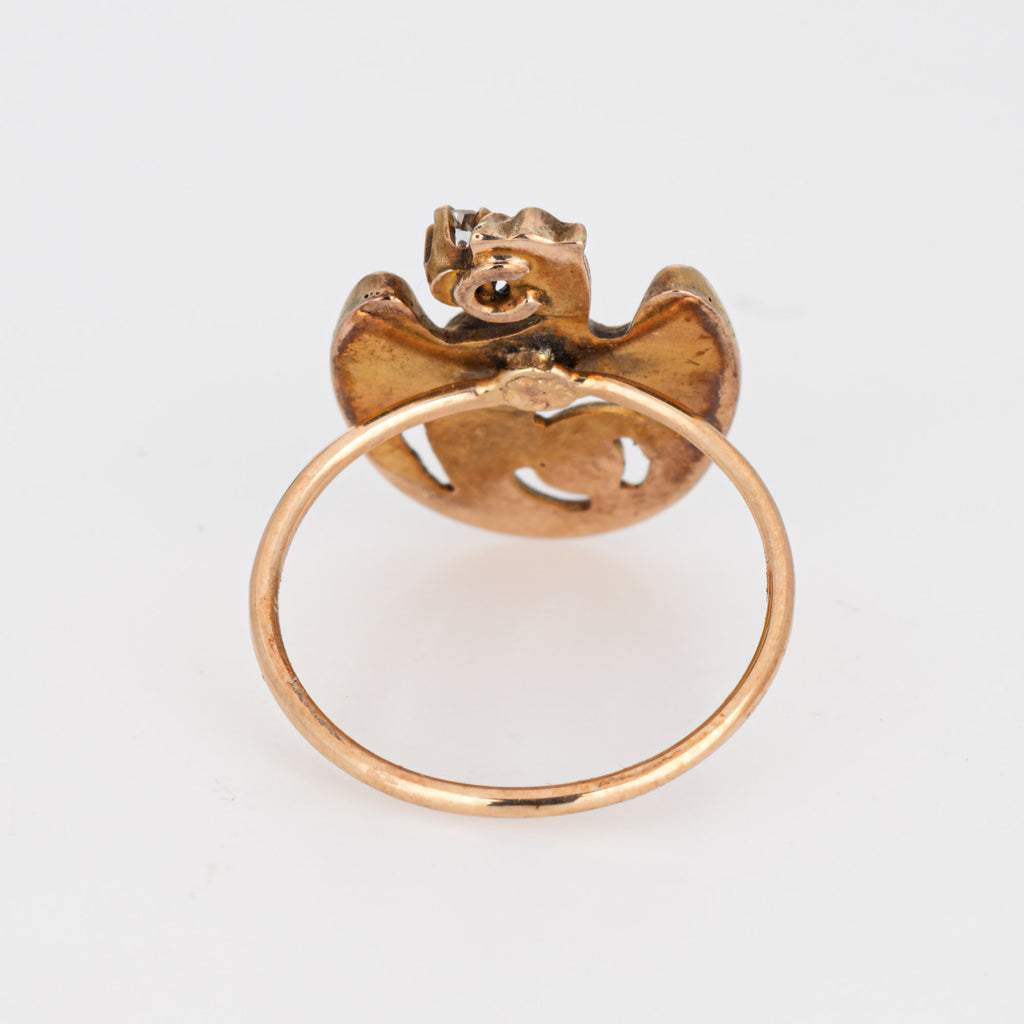 Antique Victorian Dragon Ring Conversion Griffin Diamond 14k Yellow Gold Sz 4