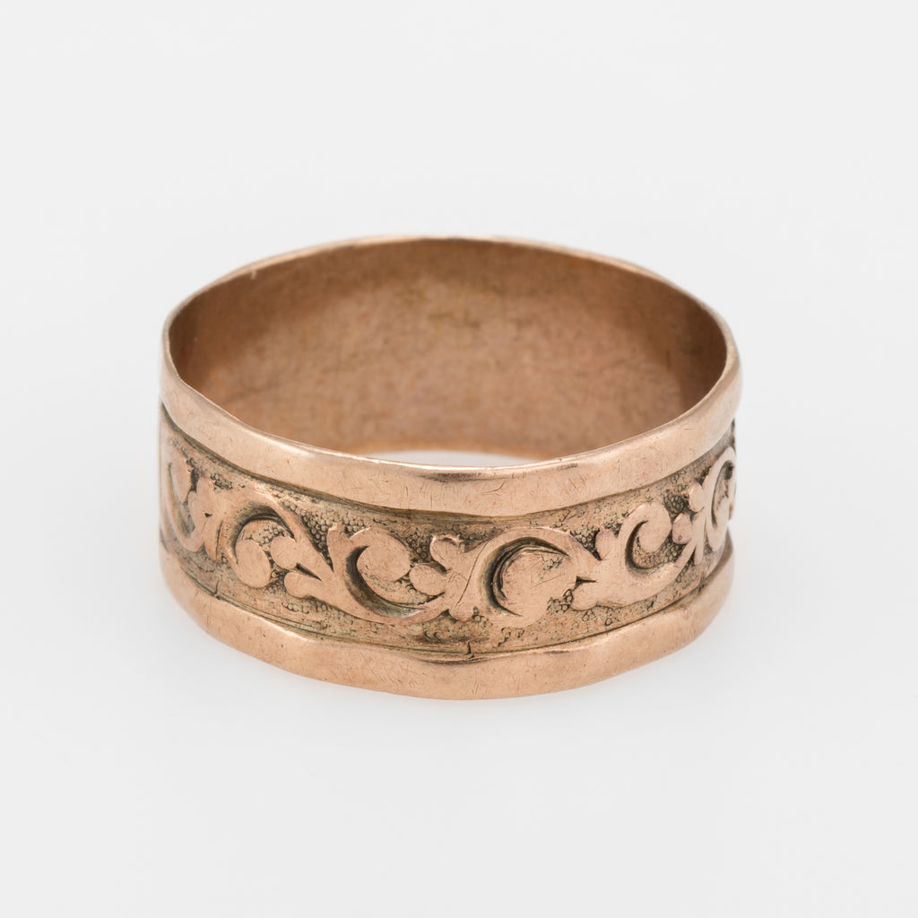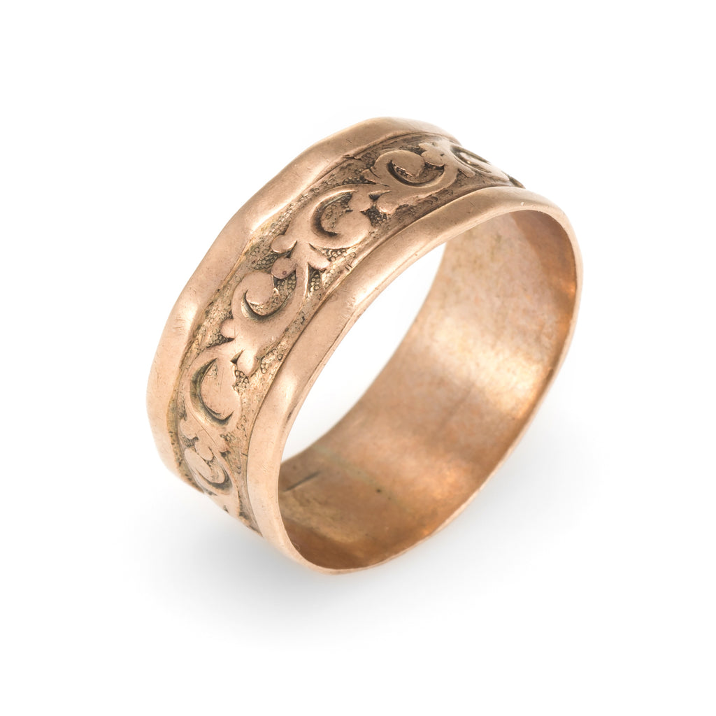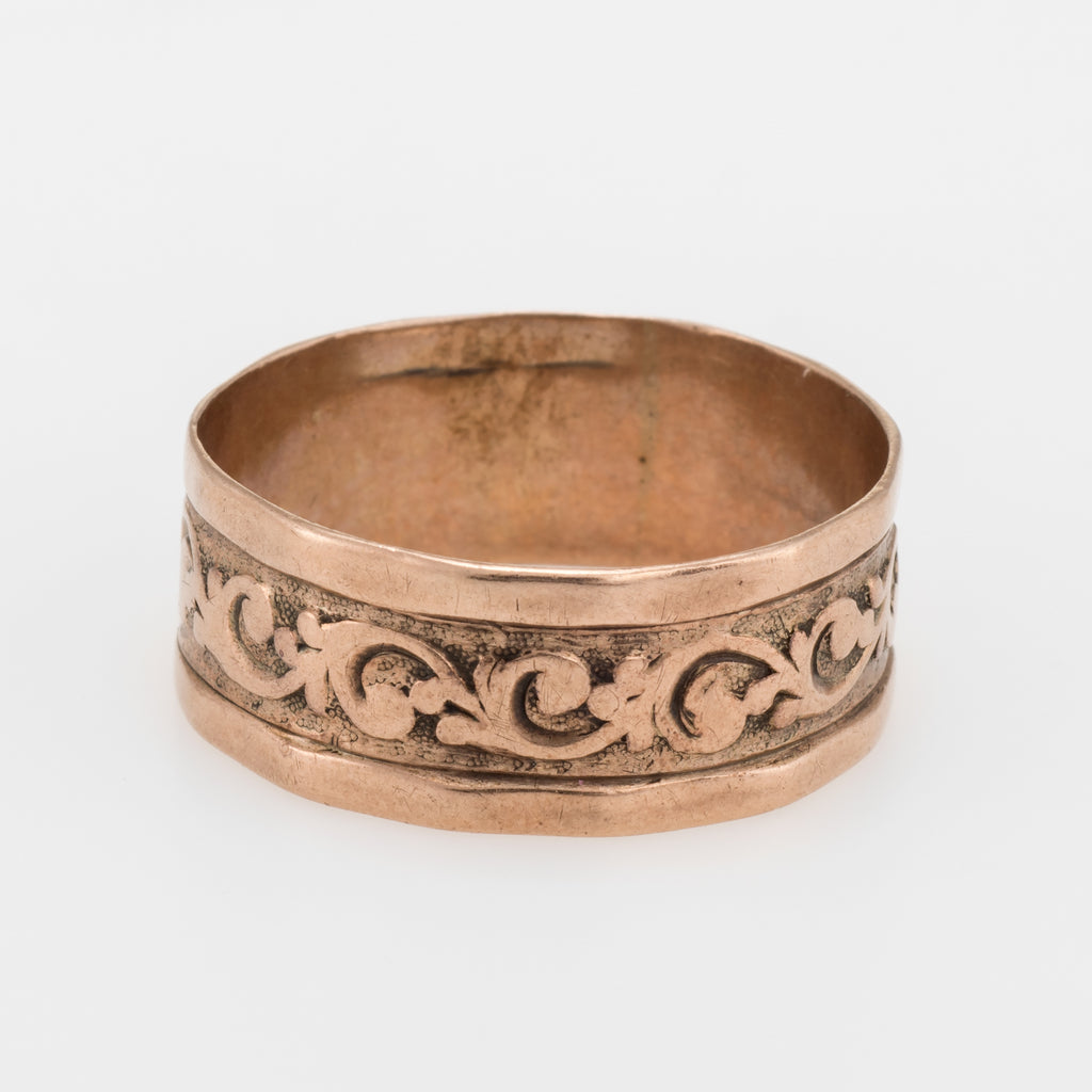 Antique Victorian Embossed 10k Rose Gold Wedding Band