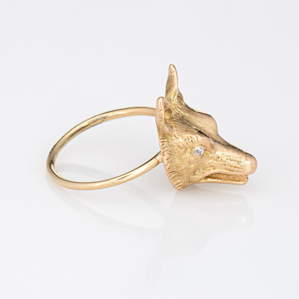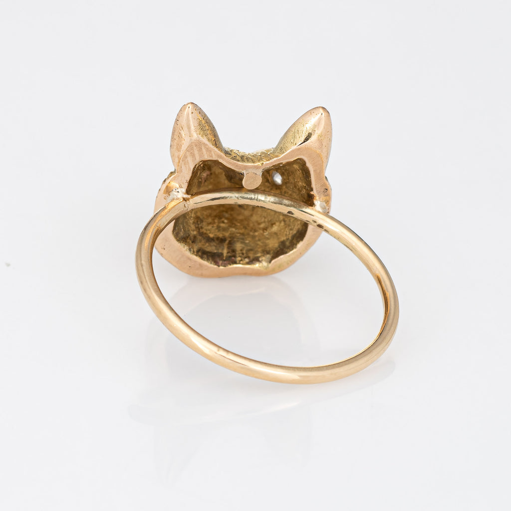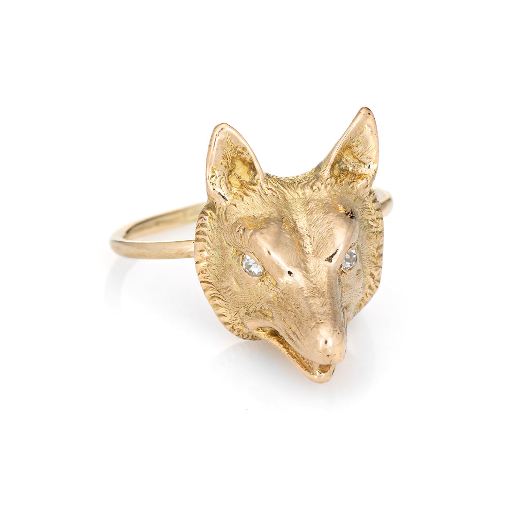 Antique Victorian Fox Conversion Ring 14k Gold Diamond Eyes Animal Jewelry