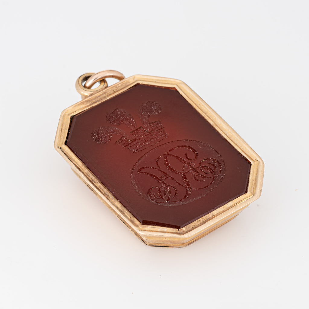 Antique Victorian Intaglio Pendant Carnelian Three Feathers 14k Gold Seal