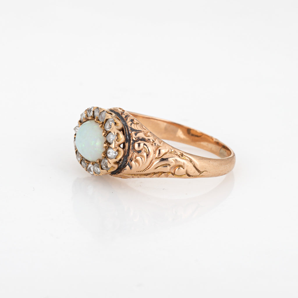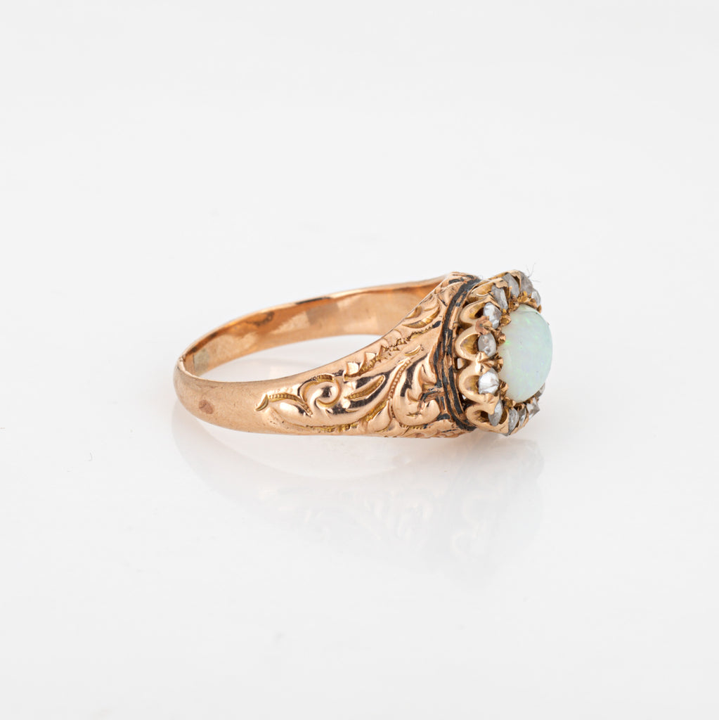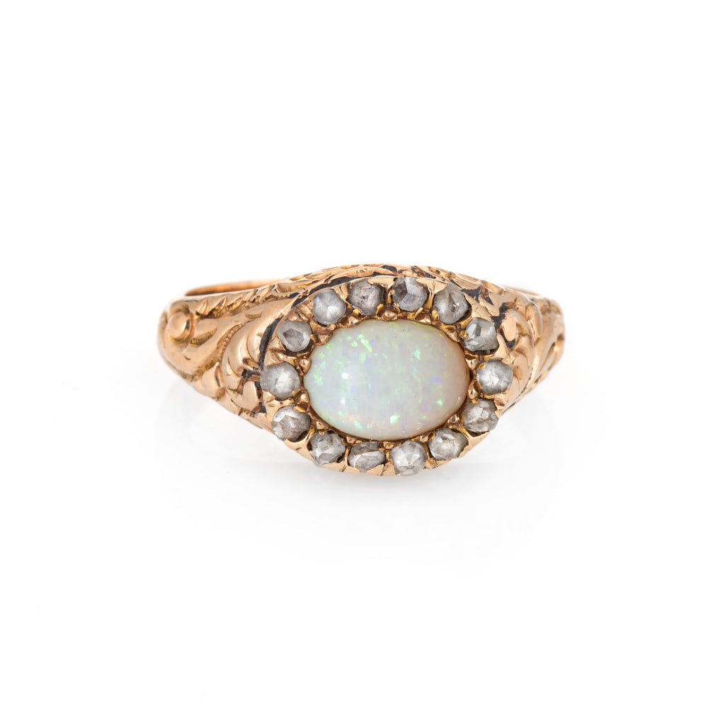 Antique Victorian Opal Diamond Ring 14k Yellow Gold Sz 5.75 Fine Vintage Jewelry