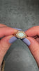 Stones: One opal measures 7mm x 5mm, accented with 14 estimated 0.02 carat old rose cut diamonds. The total diamond weight is estimated at 0.28 carats (estimated at I-J color and I1-2 clarity). The opal is in very good condition and free of cracks or chips.