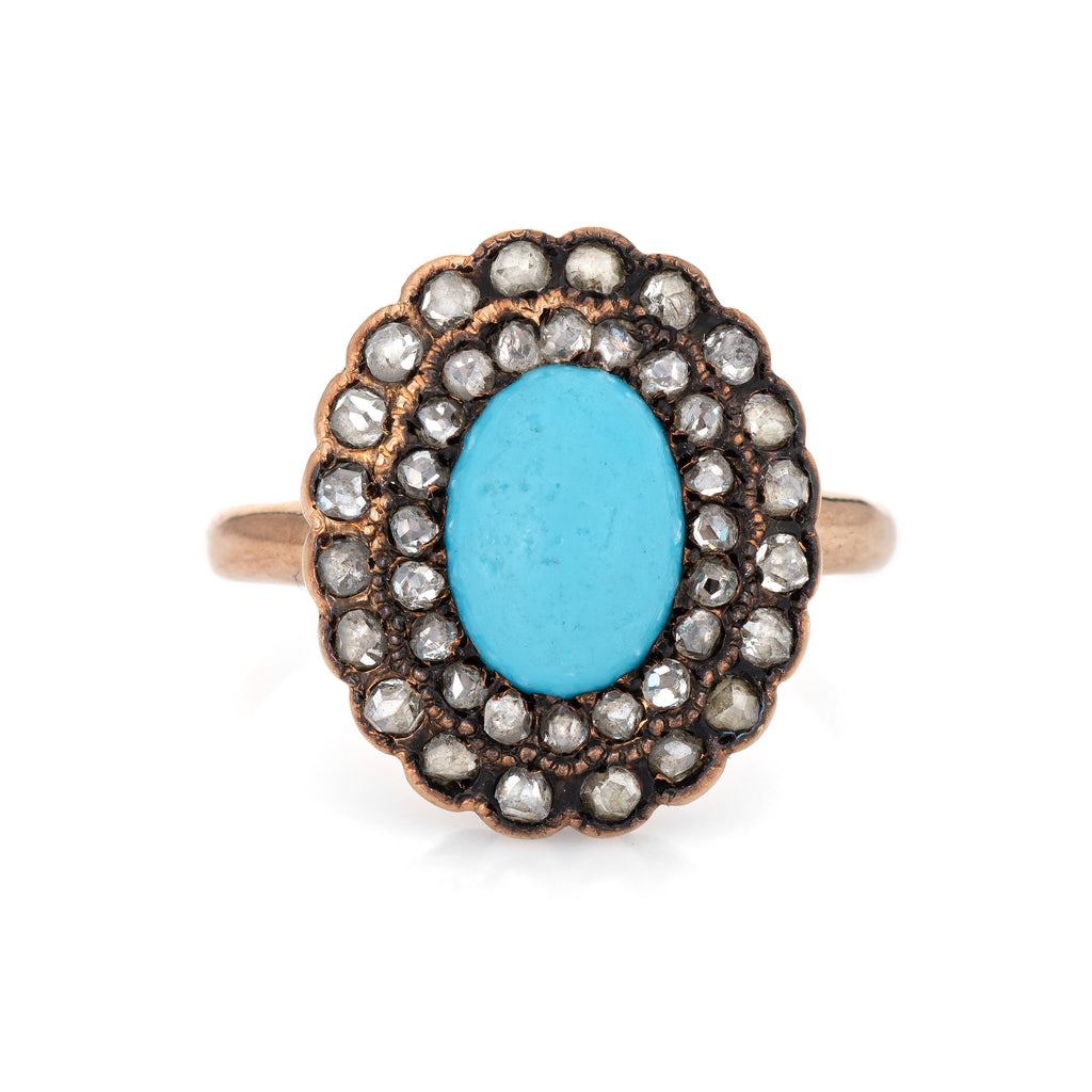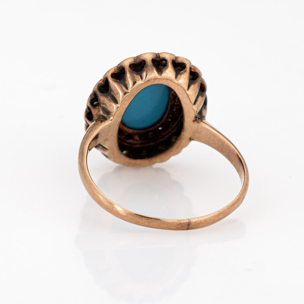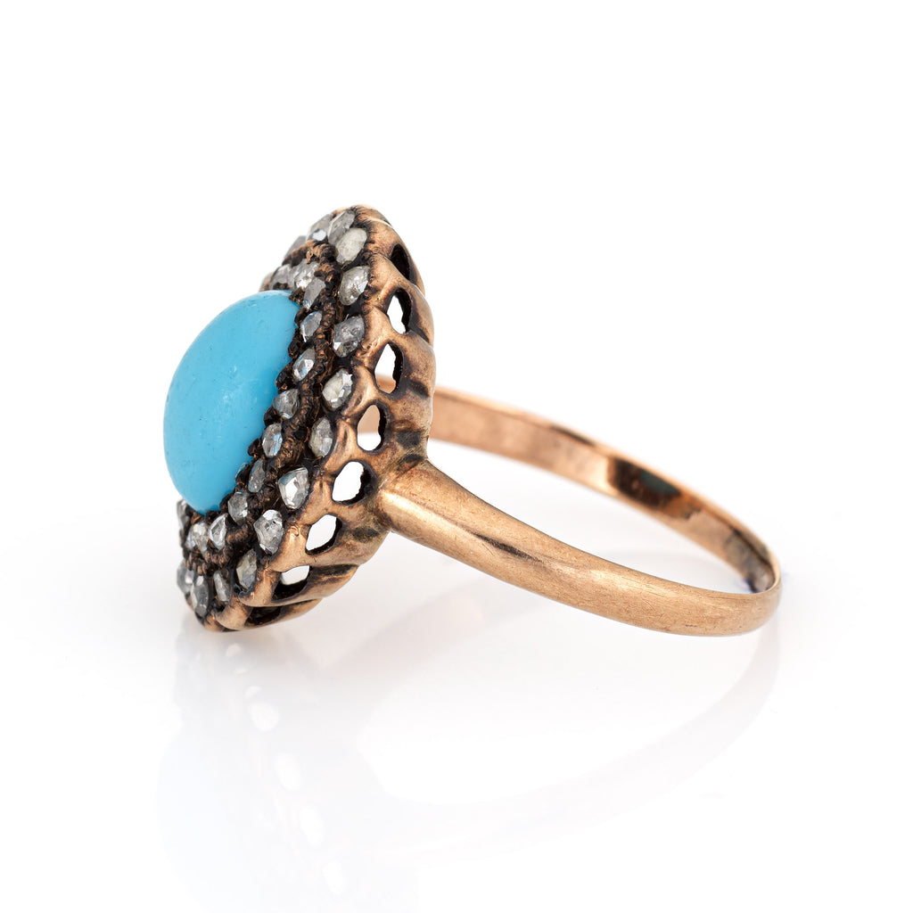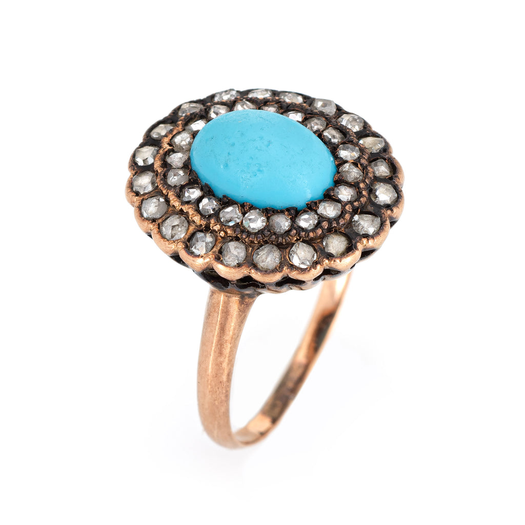 Antique Victorian Turquoise Diamond Ring Vintage 10k Yellow Gold Rose Cut Halo