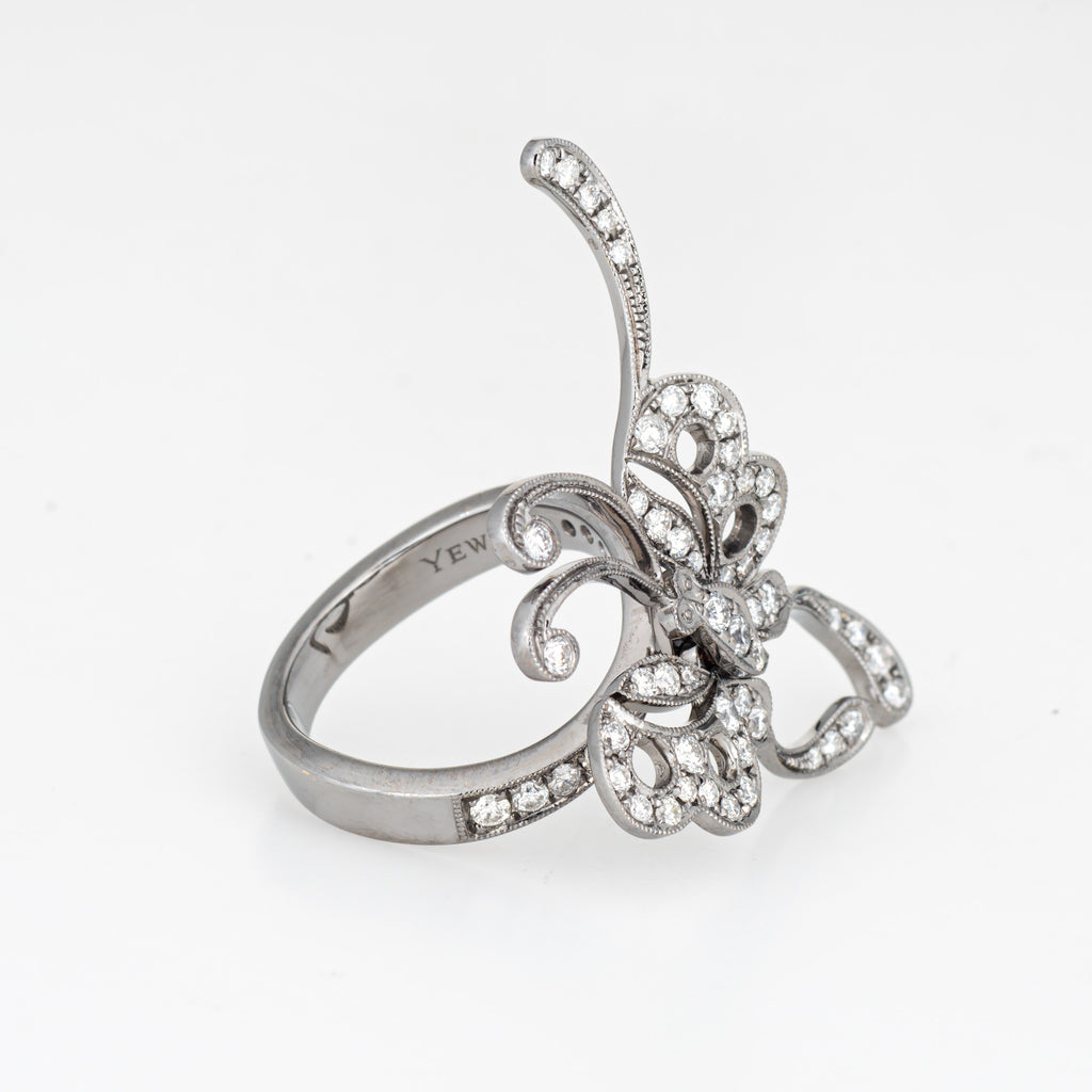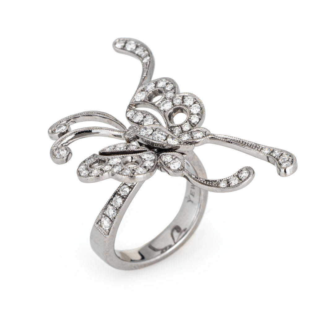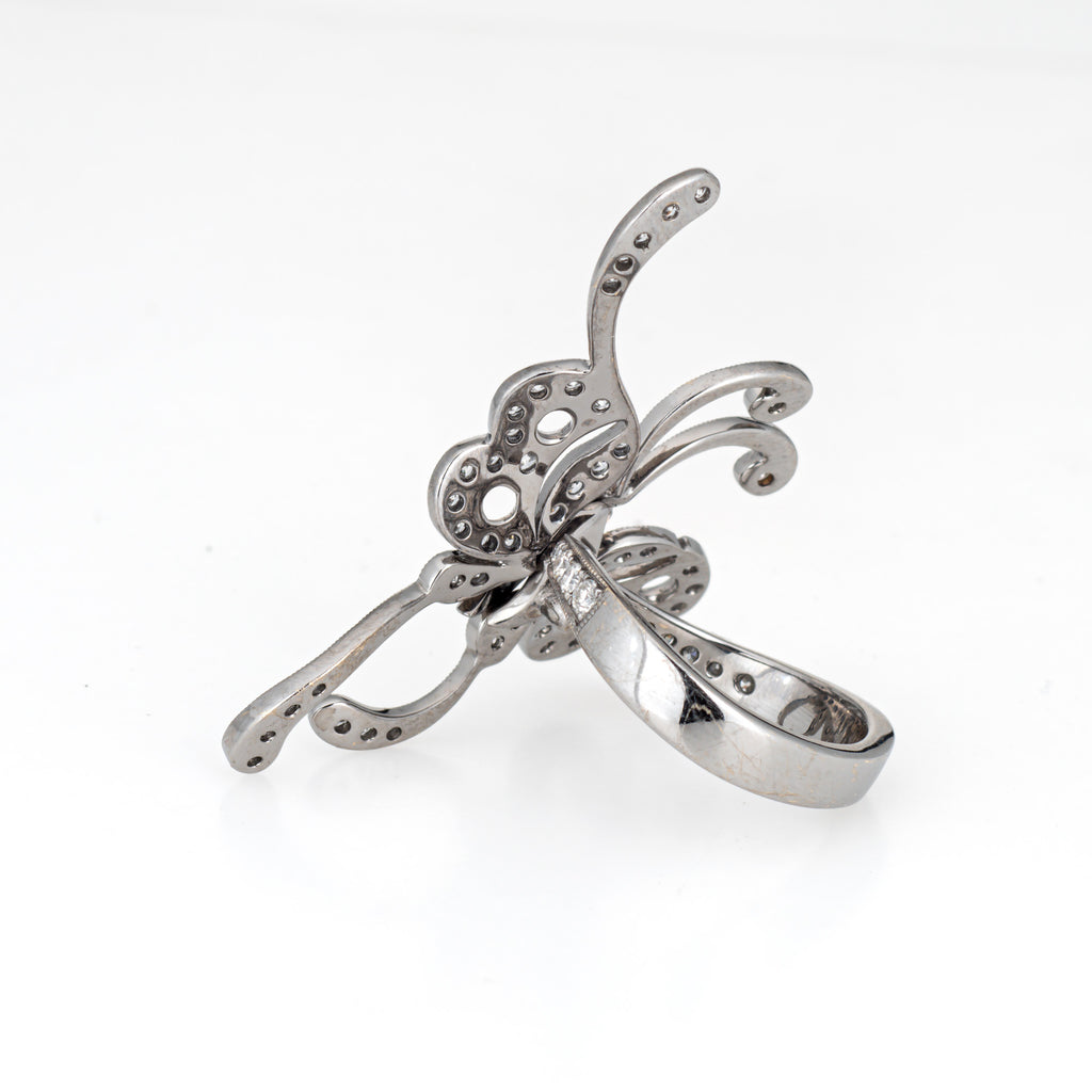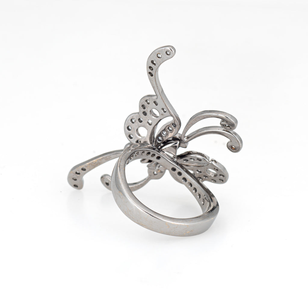Articulated Diamond Butterfly Ring Estate 18k White Gold Sz 5.5 Fine Jewelry