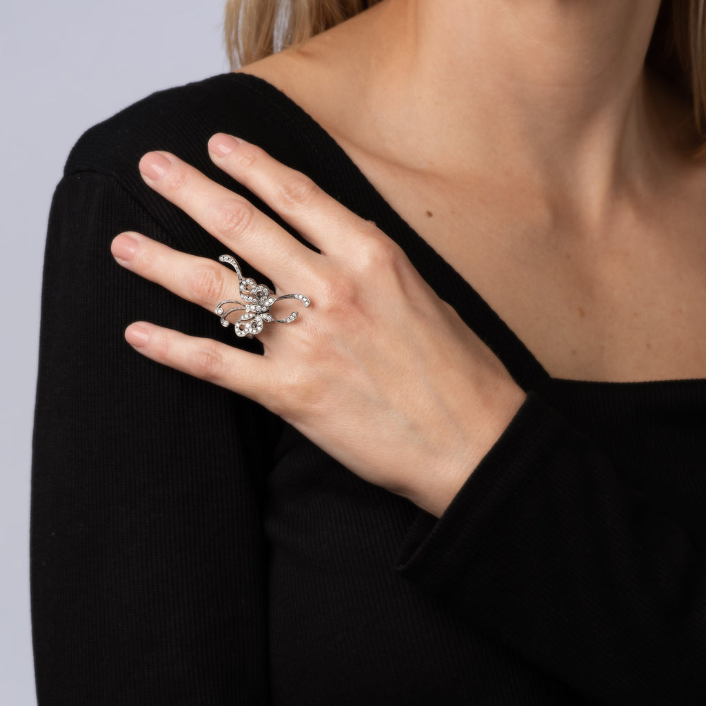 Stylish diamond butterfly ring crafted in 18 karat white gold.