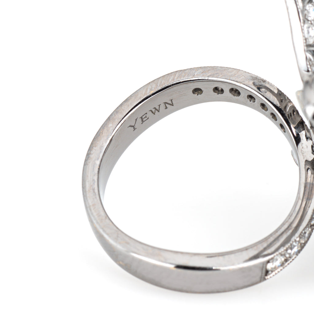Metal & Hallmark: 18 karat yellow gold. The ring is not hallmarked though it has tested positive for 18k gold. Signed "Yewn"